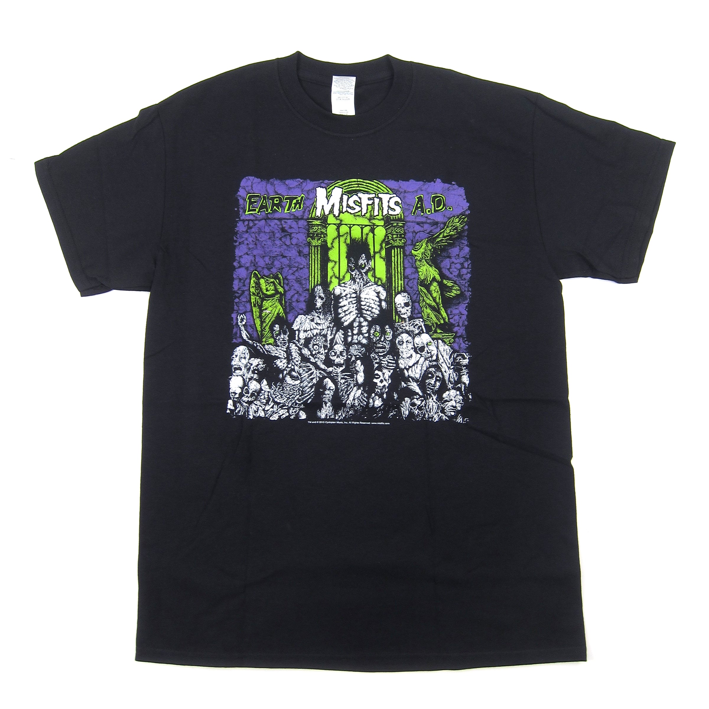 Album art from Misfits' second album, now as an official teeOriginally released in 1983, Earth A.D. was the final Misfits album to feature founding member Glenn Danzig and featured a killer Mad Marc Rude illustration for the cover. Comes printed on all cotton tees with "Misfits" printed up across the back.