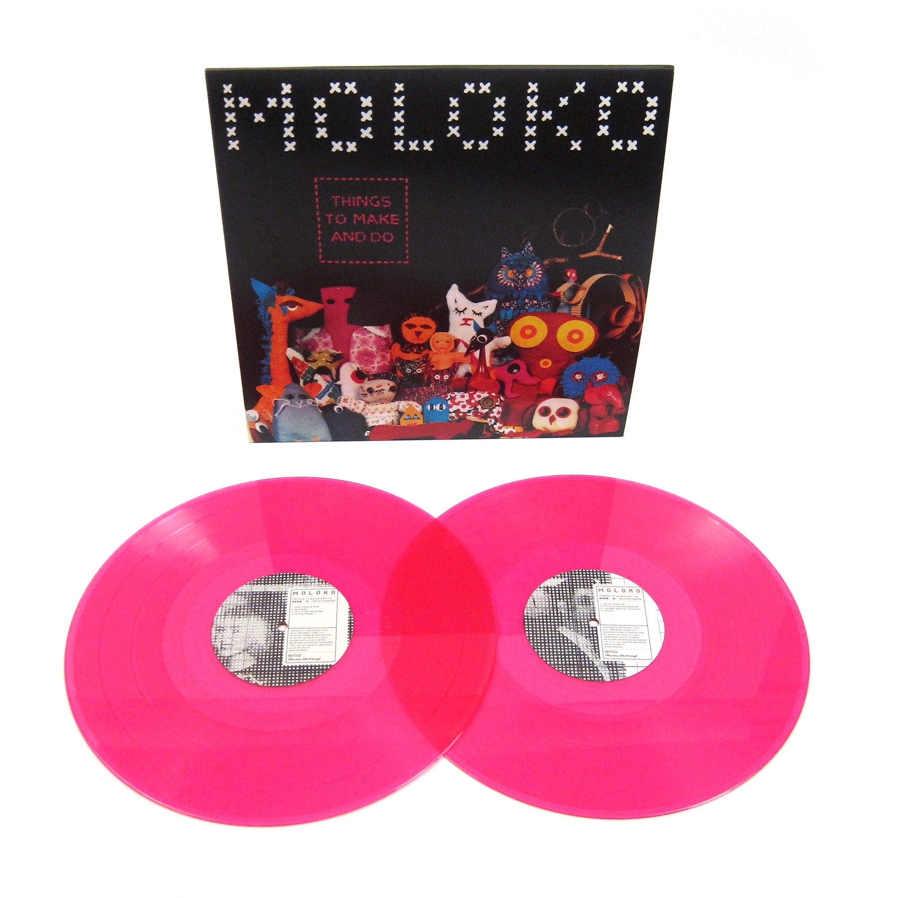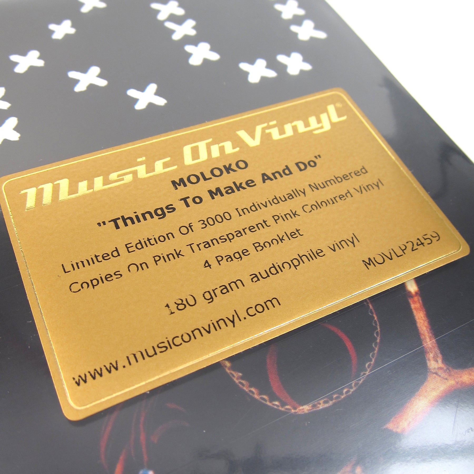 Things to Make and Do is the most vibrant and diverse record from Sheffield pop duo Moloko, in addition to being the album that marks Roisin Murphy’s ascension to art-pop queen. Things follows the unbelievable clubland success of I Am Not A Doctor’s "Say It Back", but this taste of chart success did little to quell their leftfield tendencies. (That very dance remix of the track is featured on Things as a bonus track.) Their sound is still *fun* over all, a veritable kitchen sink full of funk grooves, trip-hop wobble, and glitchy drum & bass, but with a newly added touch of live instrumentation. And Roisin - her wild yet endearing vocals touch on everything from Kate Bush detachment to Karen O’s howling to Little Richard falsetto. “The Time Is Now” is a rugged spaghetti western riff with eardrum-popping kick, Murphy’s vocals drifting from a warbling coo to Grace Jones commandments over impeccable string stabs. “Somebody Somewhere” is a squelchy bassline and shivering breakbeats with a Human League-esque (or more recently, The Juan Maclean) vocal turn from Mr. Brydon. “A Drop In The Ocean” begins with retro flanged sitar that warps and melts away from marauding electronic sequences and well-bottom incantations from Murphy. This album is pressed on limited edition 180g transparent pink vinyl and includes a 4 page booklet. Limited to only 3000 numbered copies, highly recommended for fans of quirky left-field dance music such as the Basement Jaxx and Chromeo, in addition to those who enjoy chin-scratching art pop earworms.