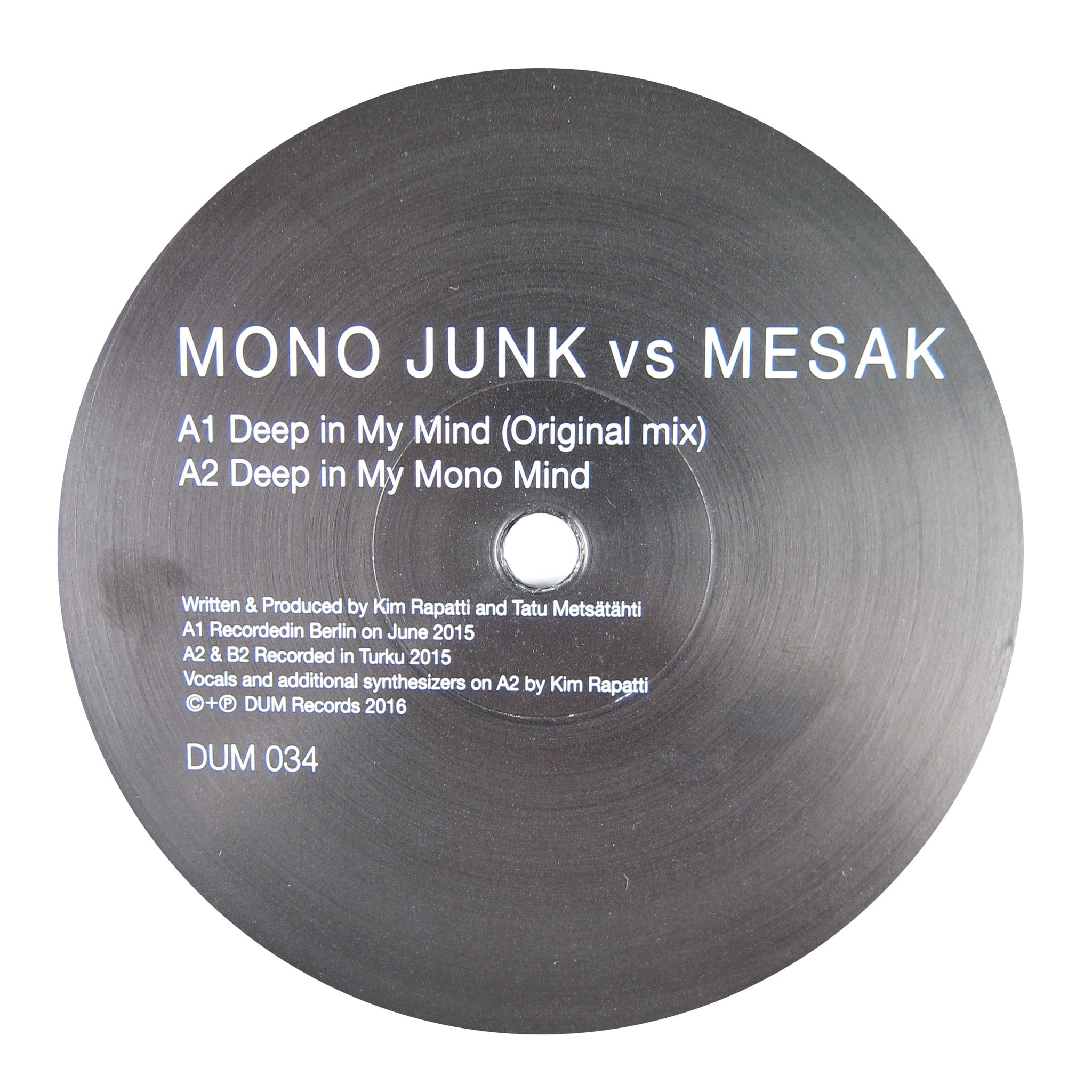Into the depths of your neural cortex. Finnish techno O.G. Mono Junk (aka Kimmo Rapatti) teams up with fellow Finn Mesak for a trip to the deepest and darkest techno zones. The original mix of "Deep In My Mind" is a descent into techno madness with twitchy synths, a sizzling acid line, and paranoid percussion. The Mono Mix takes the opposite approach by getting rid of the drums completely and letting the synths soar into infinite space, while the electro mix goes full-on electro - syncopated beats and all. Also includes "SYSdrum" to fill any void of raw, angsty electro you may still have in your soul.