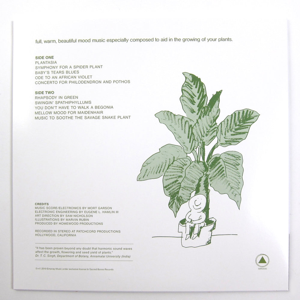 Long out of print album for lovers of plants and synthesizers finally reissued! Originally released in 1976, Mort Garson's Mother Earth's Plantasia has been labeled "warm earth music for plants . . . and the people who love them" and has gained a cult following in recent years despite its long-standing rare status. Built from Garson's warm Moog melodies, the album runs the gamut of moods, from charming and serene, haunting and sinister, to playful and surreal - the perfect soundtrack to hanging out (stoned or not) with your photosynthesizing pals. Garson rose to prominence as a composer, bandleader and songwriter of rock singles in the late 1950's before becoming an early adopter of the Moog synthesizer (he actually soundtracked the 1969 moon landing with it). Plantasia feels like the culmination of his work as a composer and arranger, or at the very least, his most timeless and memorable. This is the first official repress of the album, complete with full reproduction booklet, and digital download (printed on plantable seed paper) courtesy of Sacred Bones. Recommended.
