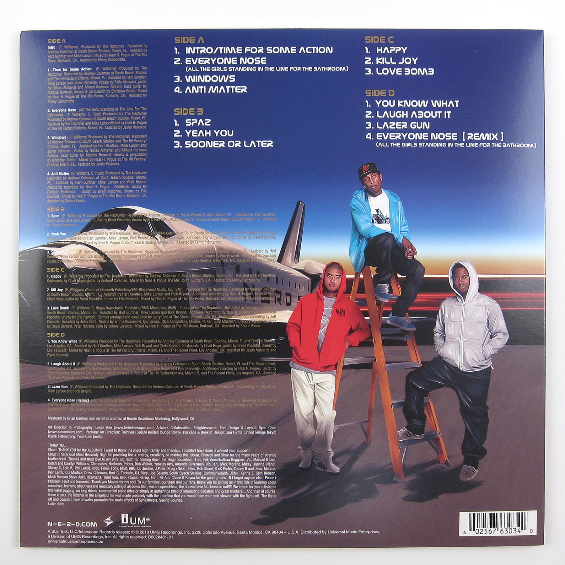 "You and your girls are going out tonight / Ya'll been planning this all week, right..." N*E*R*D's third album was a deliberate attempt to bring the hyperactive energy of their live shows into the songwriting process, best exemplified by lead single "Everyone Nose" but also apparent on album cuts "Spazz," "Kill Joy," "You Know What" and "Laugh About It." Those more comfortable with the band in groove mode will appreciate "Yeah You", "Sooner Or Later" and "Love Bomb." Features additional instrumentation from The Hives as well as the band's go-to rhythm section Spymob. Wasn't fawned over upon initial release in 2008, but 10 years later has become somewhat of a cult record and this nice reissue is well deserved. 14 tracks pressed on double vinyl; includes the remix of "Everyone Nose" featuring Kanye West, Lupe Fiasco and Pusha T which didn't appear on the original vinyl pressing.