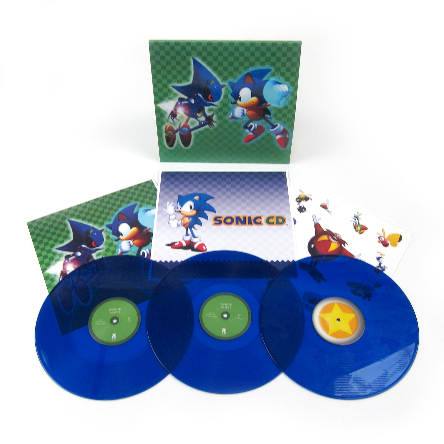 The Sega CD was anachronistic almost immediately upon its release, but it has its gems (or should we say emeralds?). A bulky add-on for the clinging-to-relevance Genesis, the Sega CD arrived in Japan in 1991, and a few years later in the US and Europe. The Sega CD was capable of displaying full motion video and CD-quality audio, a first for a console from a major manufacturer. While the violent content of some Sega CD titles lead to its share of controversy (and even congressional hearings) in the United States and Europe, Sega Japan was hard at work on an upgraded sequel to the Megadrive smash hit Sonic The Hedgehog 2. Sonic 2 had been developed by the Sega Technical Institute in the US with a gameplay style that emphasized speed above platforming and exploration, but Japanese gamers preferred the latter elements. The lackluster performance of Sonic 2 in Japan lead to a new direction for the Sonic CD project, resulting in what is considered one of the finest titles in the Sonic franchise. The game features a time travel element inspired by the time-slipping adventure film Back To The Future 2, with each level having 4 different variants - Past, Present in addition Good Future and Bad Futures. Sonic traverses these timelines by spinning bespoke signposts, instantly transforming the level’s color palette, enemies, and music. The music is organized on this release by timeline, then by level, leading to a more varied listening experience than if they were 4 remixes of the same track in a row. (One note about the music - The geniuses at Sega of America decided that the Japanese score wouldn’t work in the US, and they composed their own. It's not great, and it's not included in this set.) This 3 disc set collects the original version of the soundtrack that was featured in the Japanese and European editions of the game, and is a brilliant collection of Chiptune-style electronica. The Japanese soundtrack was composed by Naofumi Hataya and Masafumi Ogata, who had met while working on an 8-bit adaptation of Sonic The Hedgehog. The music is primarily inspired by contemporary house and techno music of the time, with Hayata citing C+C Music Factory, Frankie Knuckles, and The KLF as influences. “I looked at how Sonic was received by the British audiences. Sonic was even seen on slipmats used by DJs in clubs. It was the early 90’s, and new types of dance music were just starting to reach Japan.” The enhanced specs of the Sega CD greatly expanded the duo's compositional possibilities, with the music no longer limited to a mere six channels of audio. “Palmtree Panic” could be an 808 State 12” played at double time - pounding piano chords, chopped and screwed samples of a cheering crowd, a quirky sax-like lead - even a breakdown with a high pass filter effect. “Wacky Workbench (Bad Future)” starts with straight-up rave klaxons, buzzsaw basslines and huge synth stabs. “Stardust Speedway (Present) ” is shimmering polyphonic synths and clockwork percussion with a hip-hop swing, “Metallic Madness (Good Future)” is rugged breaks and digital slide whistle. You can’t be in a bad mood when you’re listening to this record - even the more downtempo pieces exude a truly positive, jubilant vibe. Impress your nerdy friends by playing some pitched-down cuts from this one during your next DJ set. Packaged in a spot-gloss sleeve, this deluxe package includes three 12x12 art prints. Highly recommended.