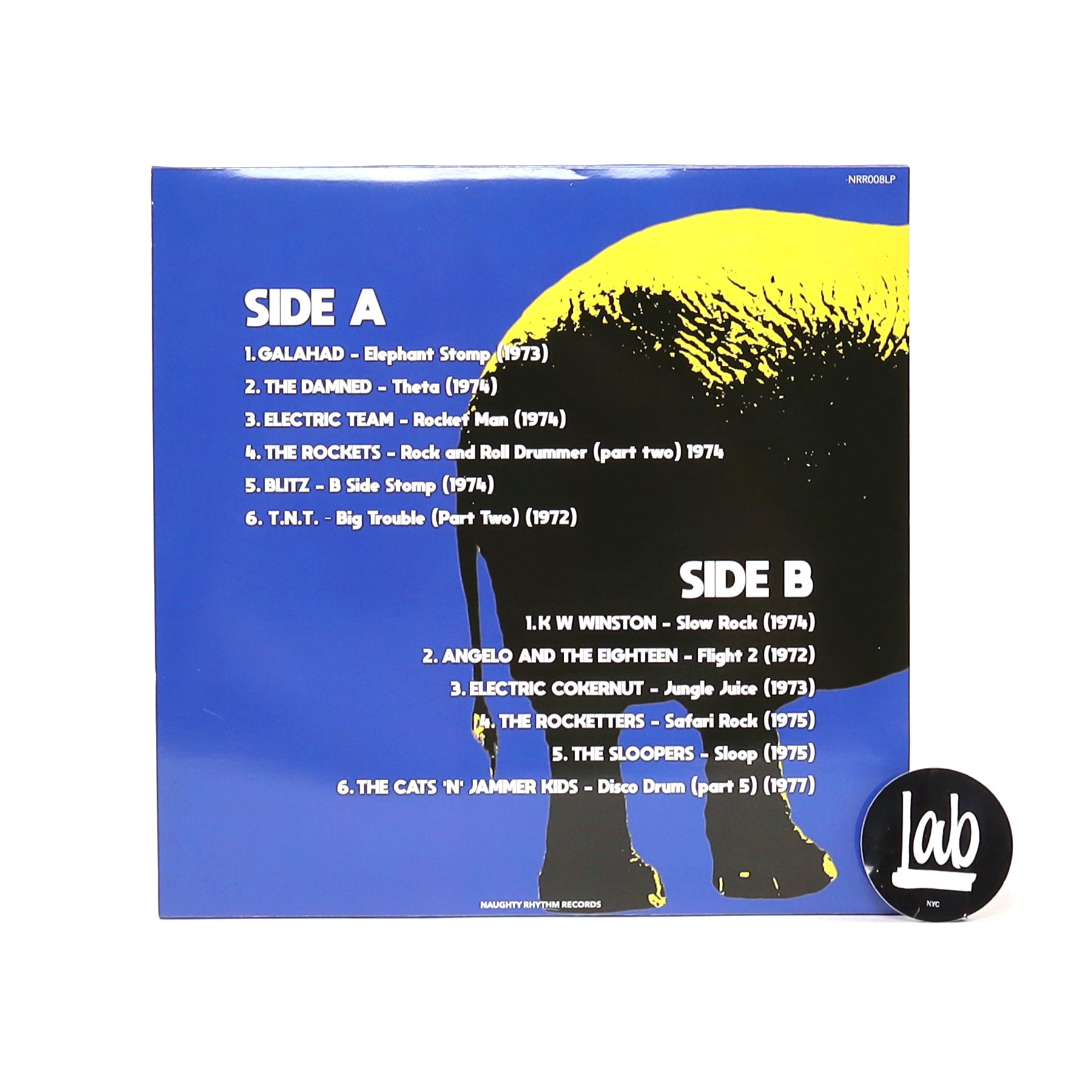 "Killer drum breaks, tribal freak rock, stomper junkshop glam, instrumental psych rock, proto-disco... those are the explosive ingredients of this unique compilation. The Cosmic Discotheque team temporarily gives up with the pure '70s disco mark of the previous releases and, while remaining in the same decade, the spotlight will move on the rock scene. Those who have followed the series, know that the Cosmic-compilations are based on great selections of European singles (often B-sides) and lots of bizarre productions, mostly unknown and sometimes rare; and so, it will be for Elephant Stomp too! So, no long and useless solos or empty virtuosity here, just lots of groove and rousing tracks, in other words the best food for you party animals and digging maniacs. Features Galahad, The Damned, Electric Team, The Rockets, Blitz, T.N.T., K W Winston, Angelo And The Eighteen, Electric Cokernut, The Rocketters, The Sloopers, and The Cats 'N' Jammer Kids." - Naughty Rhythm Records