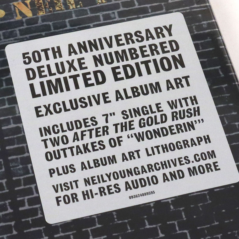"Limited vinyl LP pressing plus bonus 7" single featuring two versions of 'Wonderin'. A litho print of the album's front cover is exclusively included in this vinyl set. Originally released September 19, 1970, After the Gold Rush is cemented in the annals of music history-the album has often been rightly recognized as one of the finest ever made. The collection combined Young's poetic lyricism and wistful melodies, driven by both dreamy folk arrangements and ferocious rock 'n' roll, and in the decades since has been certified double platinum in both the U.S. and the U.K. The 50th Anniversary Edition vinyl boxset features a variant of the artwork, originally created by Neil's long-time art director Gary Burden, made in collaboration with Grammy Award-winning artist Jenice Heo." - Reprise
