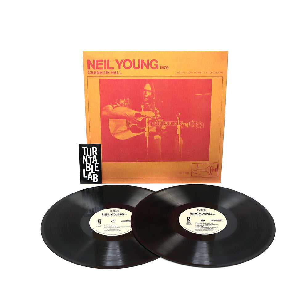 "On December 4th 1970, Neil Young played two legendary solo acoustic shows at New York's Carnegie Hall. The 23 songs in this set (2 LP & 2 CD) have been mixed from the original ¼ inch tapes by Young and Niko Bolas. This is the early show which has never been bootlegged or circulated, and is the first release in Neil's new Official Bootleg Series." - Shakey Pictures Records