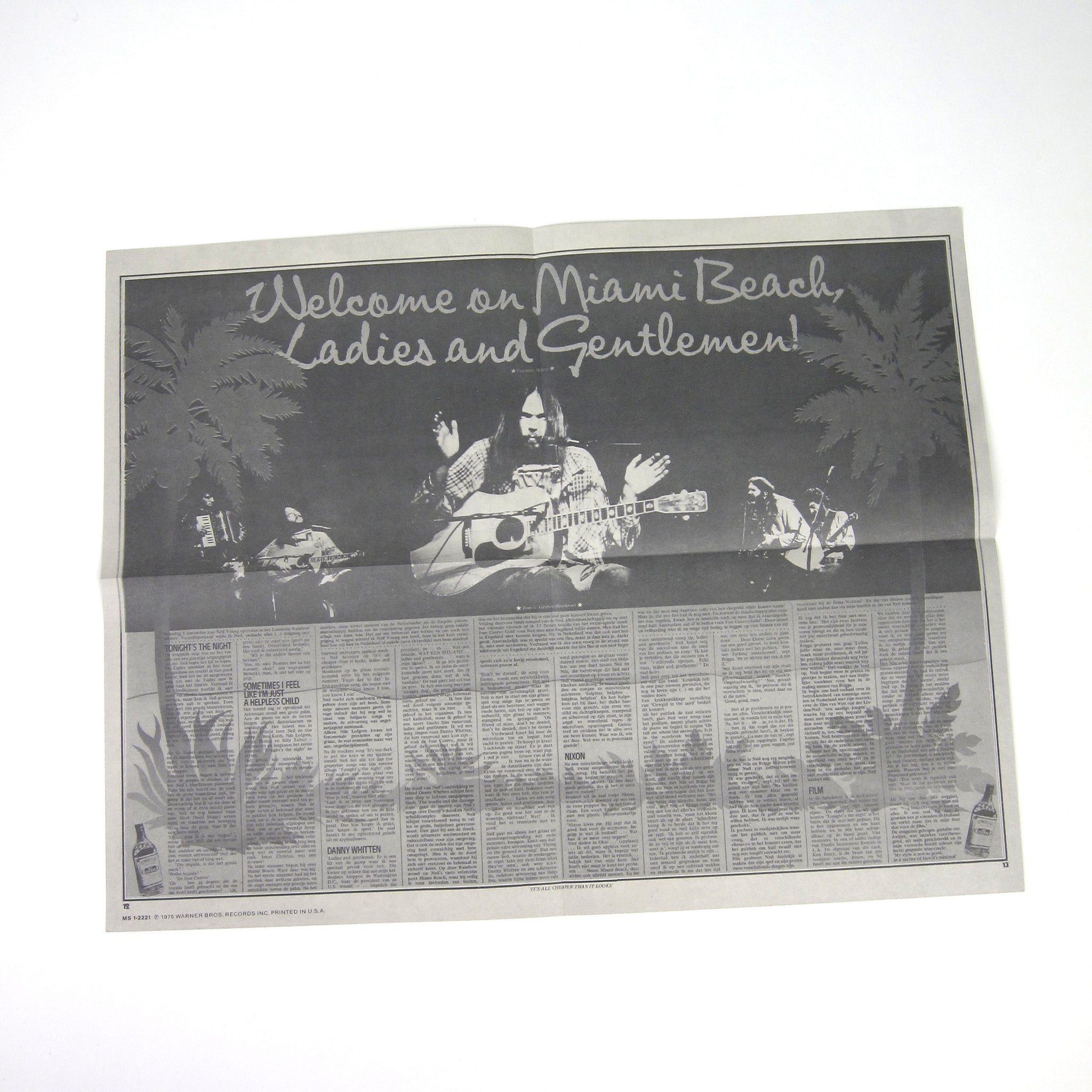 Sixth studio album from Canadian classic rock icon Neil Young. Tonight's The Night was originally recorded in 1973, but the album's release was delayed for two years. Recorded in the wake of the drug overdose deaths of Crazy Horse guitarist Danny Whitten and Young's friend and roadie Bruce Berry, the album is filled with an unshakable emotional intensity. The music is unhinged and aggressive with Young's lyrics preoccupied by death and disaster. It's a powerful statement from an artist that could have easily glided along on the smooth sounds of his earlier releases. Twelve tracks in all. Released by Reprise Records on black vinyl with an insert.