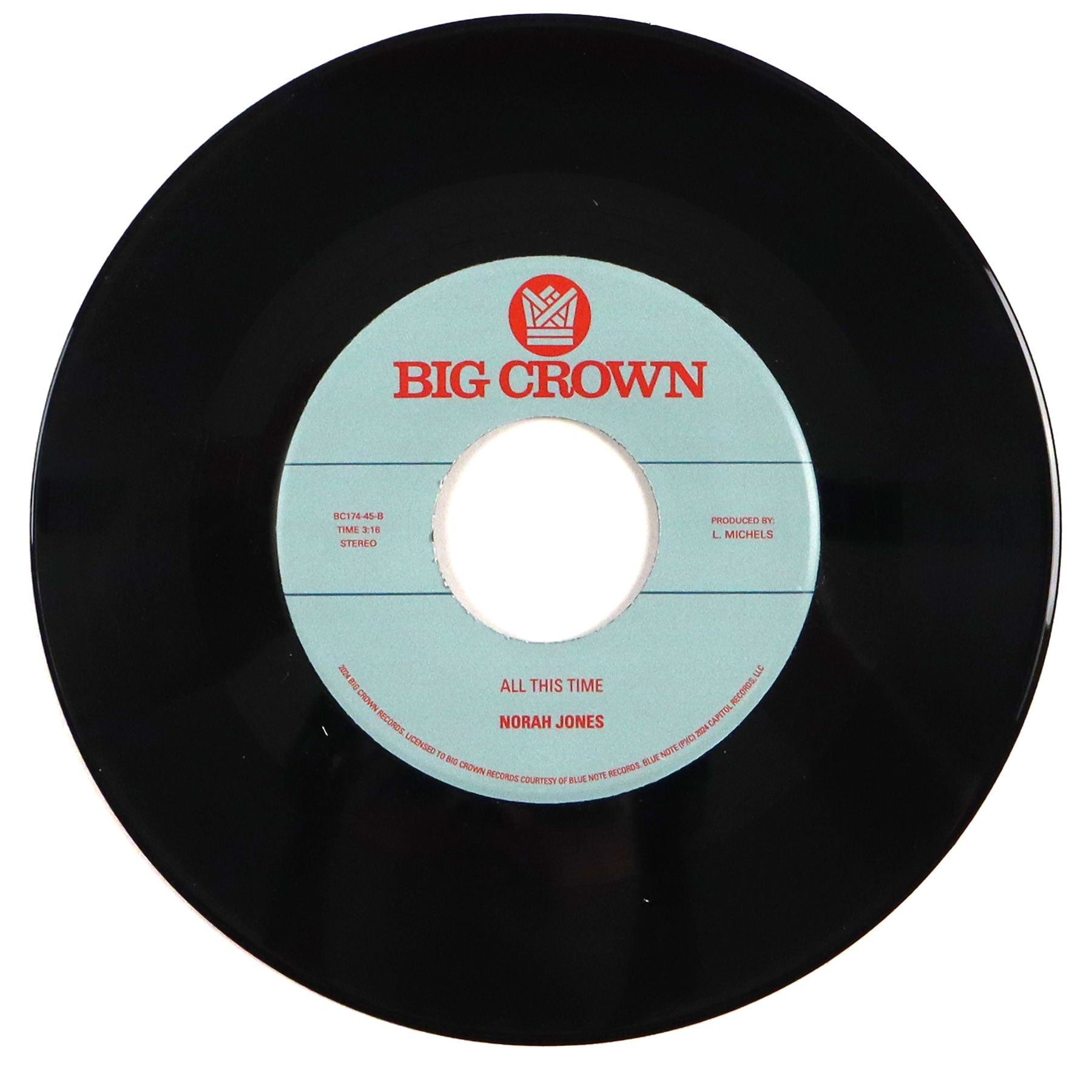 "When Norah Jones & Leon Michels made a Christmas record together we loved it. When we heard Norah was having Leon produce her new full length album Visions, we couldn’t wait to hear what they would come up with. The first song we heard over here from those recordings was 'All This Time' and we were blown away, playing it all day everyday for weeks. That tune needed to be on a 45 so we asked the good folks at Blue Note if they would be down to do a limited edition 7″ release with us. To make it a classic plug & ballad pairing we put the stand-out toe tapper 'Staring At The Wall' on the A side and what we have here is an absolute must have 45." - Big Crown Records