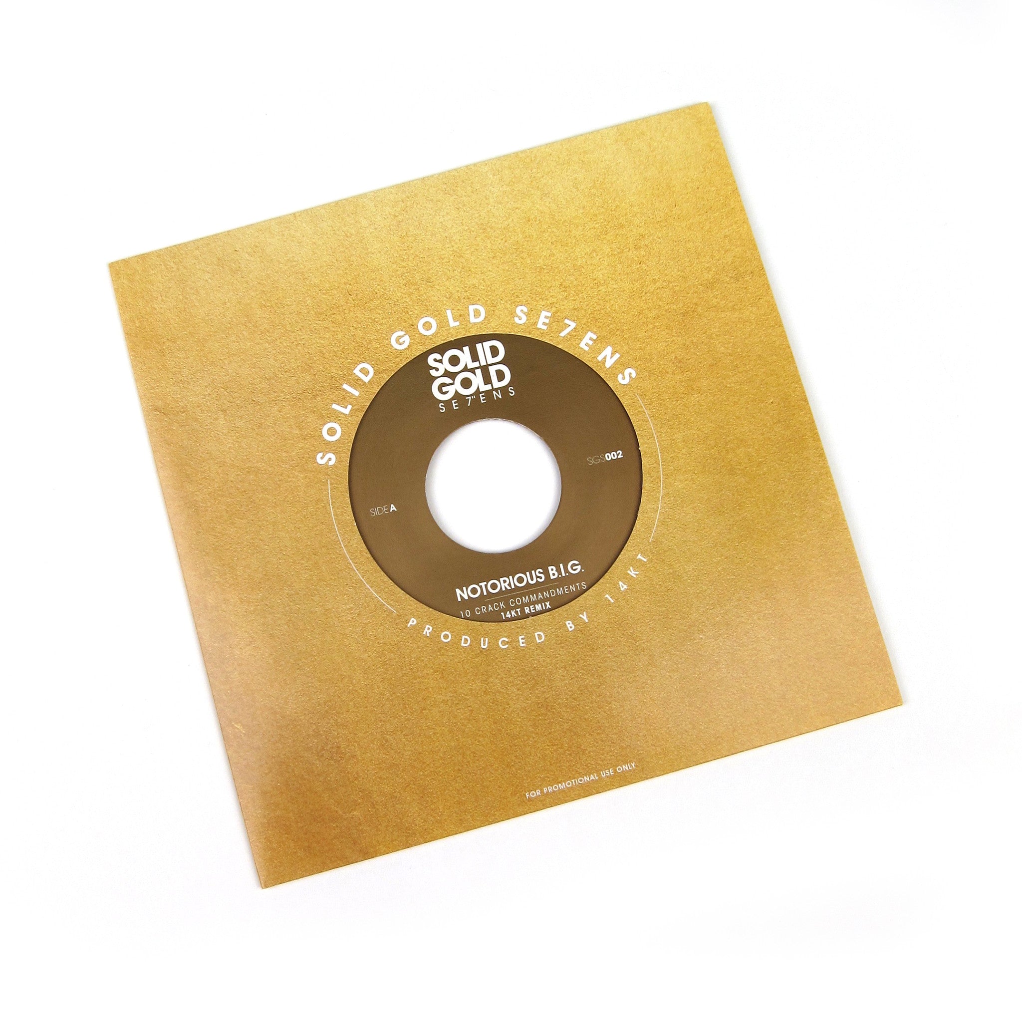 BOOM. 14Kt is back with the second installment of his Solid Gold Se7ens series, and this ones a doozy! After killing it with his remix of D'Angelo, the Michigan-based producer goes in with his sought-after remix of Biggie Smalls. The remix of "10 Crack Commandments" originally appeared on House Shoes' highly sweated DREAMS - B.I.G. RE:IMAGINED project, but this is the first time you can get the track on vinyl, so don't sleep! Comes pressed up on gold colored wax with the instrumental on the flip. Only 200 copies.
