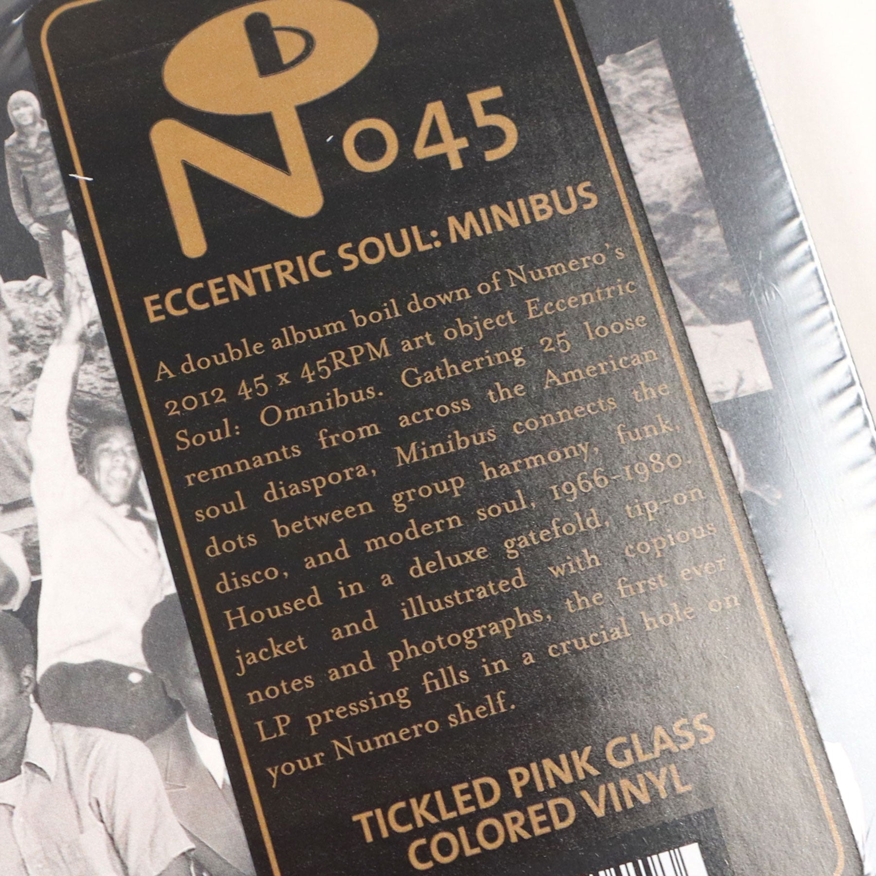 "A double album boil down of Numero's 2012 45 x 45RPM art object Eccentric Soul: Omnibus. Gathering 25 loose remnants from across the American soul diaspora, Minibus connects the dots between group harmony, funk, disco, and modern soul, 1966-1980. Housed in a deluxe gatefold, tip-on jacket and illustrated with copious notes and photographs, the first ever LP pressing fills in a crucial hole on your Numero shelf." - Numero Group