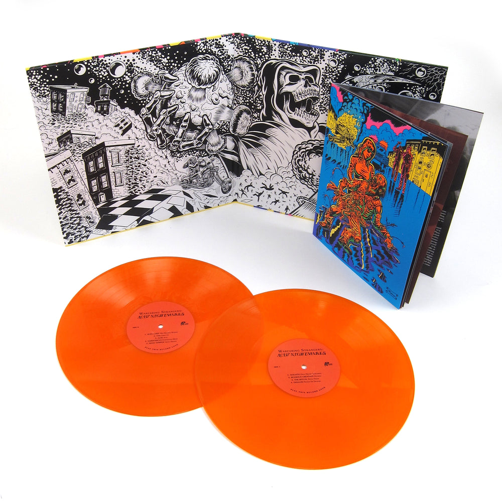 To get a feel for what you’re in for on the latest entry of Numero’s Warfaring Strangers series, check out the track list: “Speed Freak,” “Hypodermic Needle,” “Pink Pills,” “Acid Raga,” “Acid Nightmare,” “Acid” (performed by a band called Acid) … “Drugs”!! Too many bad trips in the hippie era prompted an entire generation to toss out the free love and floral headbands in favor of motorcycle jackets, overdrive pedals and devil worship. Warfaring Strangers: Acid Nightmares collects 18 “distorted tales of dope fiends, pill poppers, and the baddest of trips lifted from the ashes of the acid rock hell fire.” You won’t find any Led Zeppelin or Deep Purple here, only the rarest of the rare proto-metal burners taken from limited run 7-inches and private press LPs which would cost you a small fortune outside of this comp. 2019 transparent orange vinyl pressing packaged in characteristically fine style by The Numero Group, housed in heavy duty blacklight poster-style sleeve with 24-page booklet containing photos and extensive liner notes. Recommended.