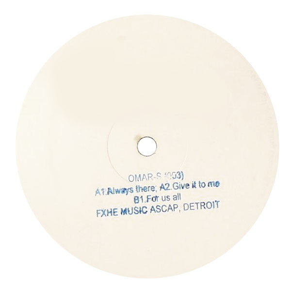 2004 release from one of Detroit's finest. Omar-S' records are like a good strip club. You never know what you'll get, but you know it's gonna be good (at least pre-economic meltdown). "Always There" starts it off with a simple piano hook like something you might kick out by accident as a kid. But Omar builds around it until you're like "this is genius!" "Give It To Me" harks back to the early days of house with the signature hi-hat and disco edit feel. B-side wins with "For Us All," a jazzed out, afro-house number that builds oh so slowly.
