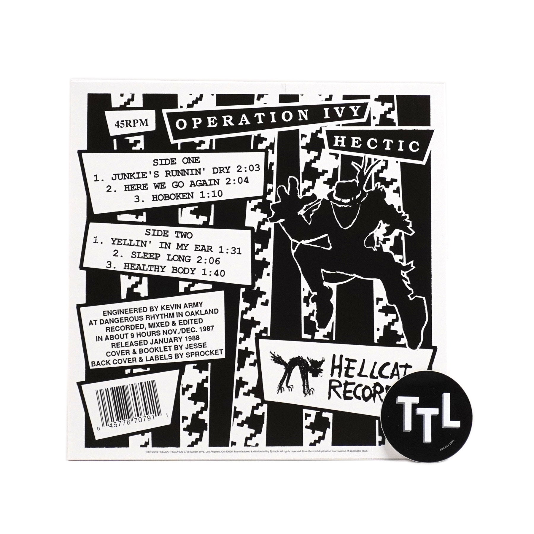 Debut EP from Berkeley, CA ska punks Operation Ivy. Hectic was originally recorded in 1987 and is credited as being one of the first records to mix ska and hardcore punk. All six tracks would go on to be featured on the band's self titled compilation album. Includes the songs: "Here We Go Again," "Yellin' In My Ear," and "Healthy Body." Six tracks in all. Released by Hellcat Records on black vinyl with an 11" booklet.