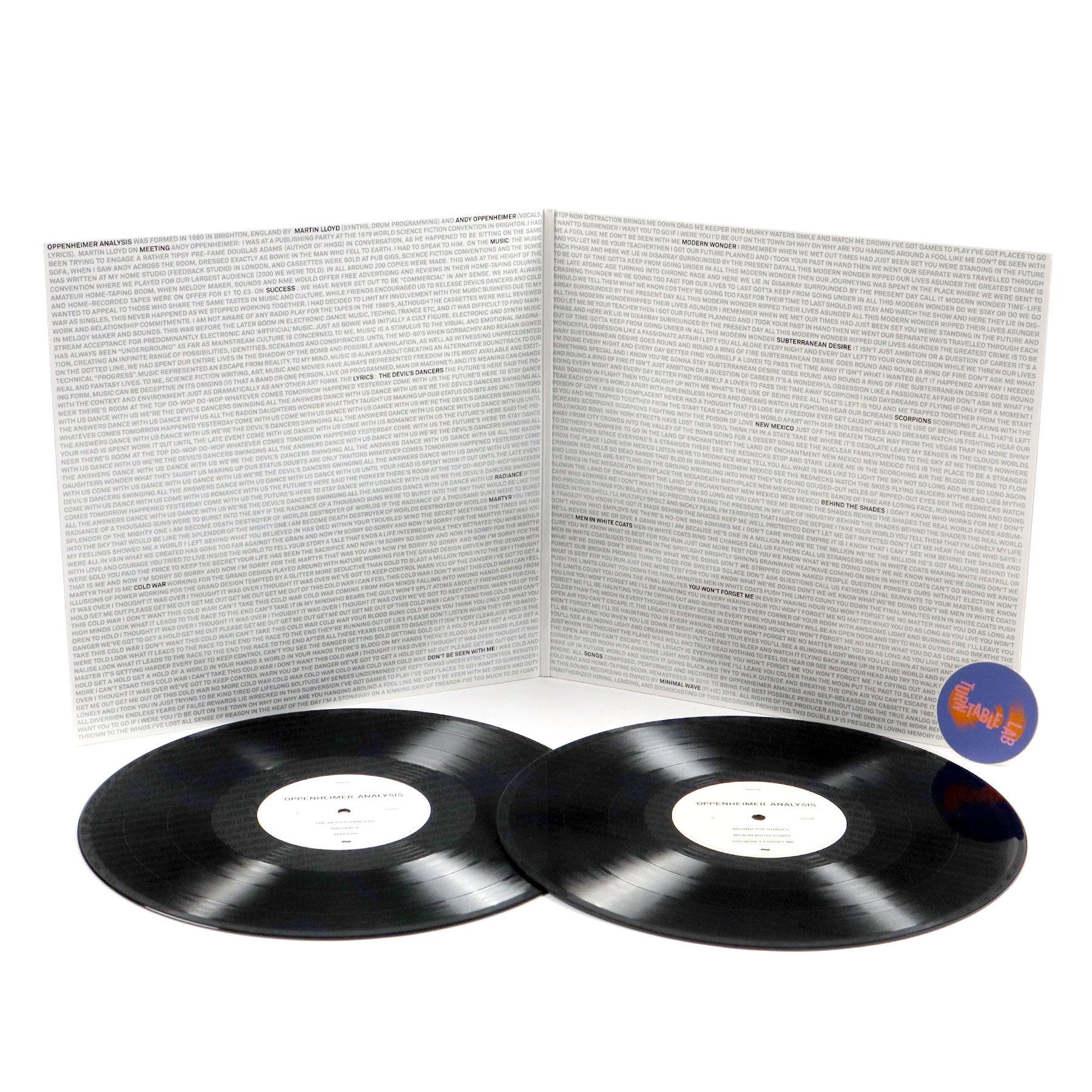 • "Minimal Wave proudly presents a newly remastered deluxe double album of archival material by pioneering 80s minimal electronic duo Oppenheimer Analysis. Oppenheimer Analysis formed in London, England in 1982 by Andy Oppenheimer and Martin Lloyd. In 1982, Oppenheimer Analysis began writing and recording together at Feedback Studio in Battersea. Their first demo tape and twelve song 'New Mexico' cassette were sold at gigs and by mail-order, and were reviewed in Melody Maker, Sounds and Soundmaker. For the years to follow, Oppenheimer Analysis became recognized among electro-music aficionados as a pioneering duo who influenced countless other bands during the club and home-recording era of the early 1980s and beyond. Their cassettes became massively collectible. In 2005 they re-formed with the release of a self-titled four song 12” EP of selections from the New Mexico cassette, including 'Cold War' and 'The Devil’s Dancers'. This marked the first release on Minimal Wave. Now in 2015, we’re happy to present the entire New Mexico collection, newly remastered and cut to vinyl for the first time ever, to celebrate our 10 year anniversary. Housed in a glossy gatefold silver and black printed sleeve, featuring all the song lyrics on the inside of the sleeve. This quintessential reissue has been produced in loving memory of Martin Lloyd." - Minimal Wave