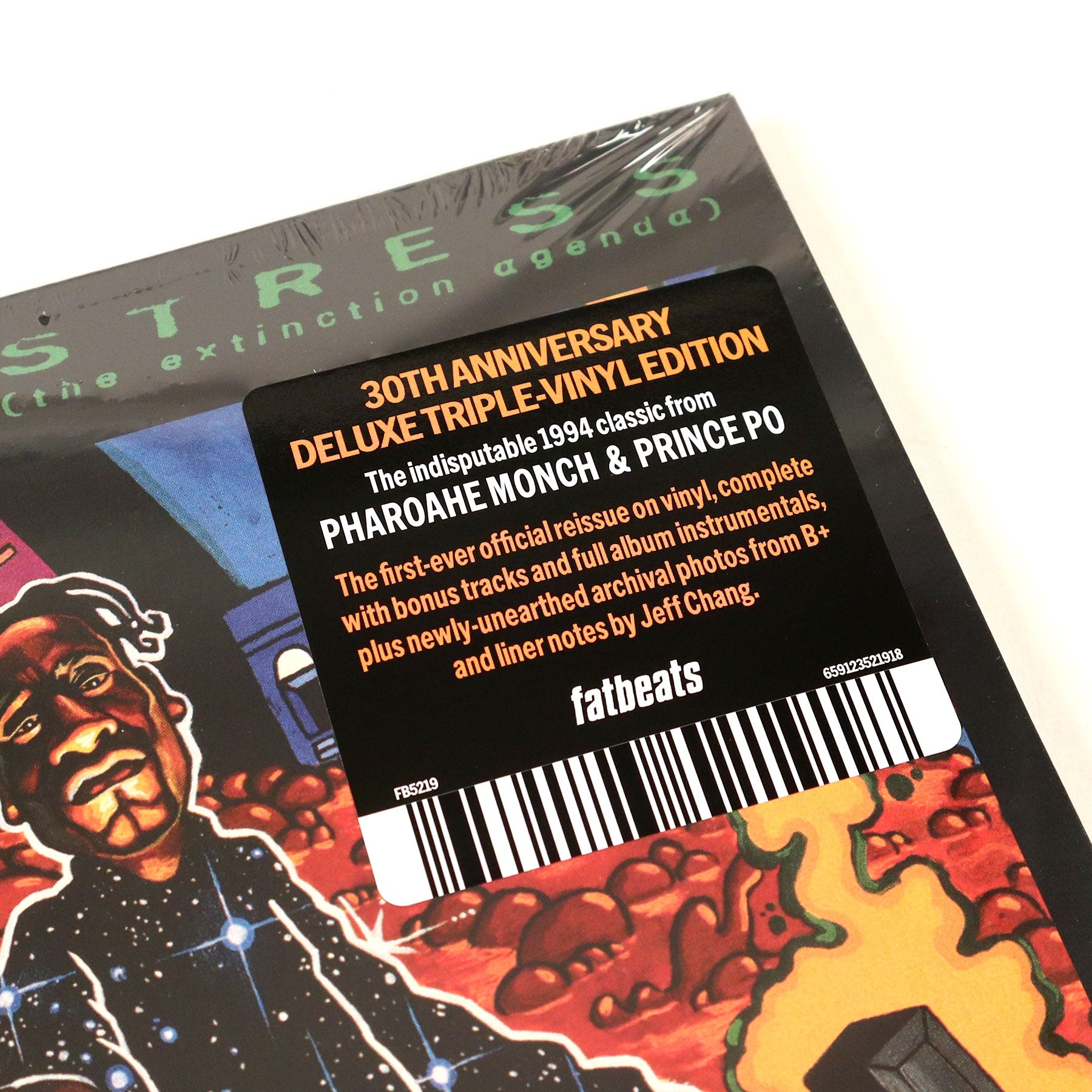 "In an era where flexing original styles was mandatory to gain respect, few Hip Hop groups were more respected than Organized Konfusion. The Queens-based duo of Pharoahe Monch and Prince Po shined brightest on their 1994 sophomore LP 'Stress: The Extinction Agenda,' which is receiving a reissue to mark its 30th Anniversary. Backed by dark, bass-heavy, and jazzy production, 'Stress' showcased Pharoahe and Po’s dynamic and ever-shifting rhyme styles and electric chemistry from start to finish, creating an album that is an undisputed classic among hardcore Hip Hop fans. Deluxe triple-vinyl includes full album instrumentals, non-album bonus tracks, plus a stunning trifold gatefold jacket featuring contemporaneous liner notes by Jeff Chang (originally published in 1994) and newly unearthed archival photos from B+." - Fat Beats