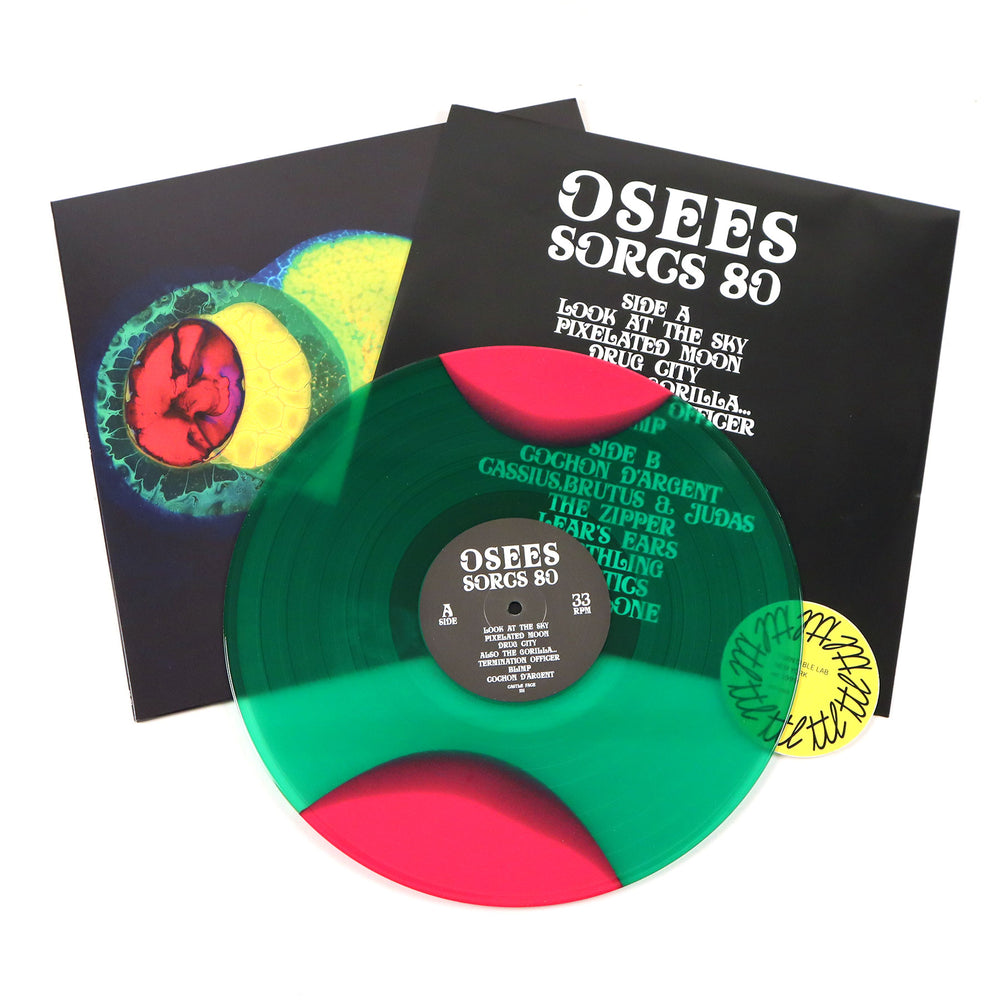 "This album [SORCS 80] was a self imposed ambitious project for us [OSEES]. Something to kick in the creative flow. The last few years, having been a challenging time in general, felt like a good time for a pivot. The last two albums were so guitar and keyboard centric, I wanted a weird and fun set of parameters for us to work with. I demo'd everything at home on cassette four track (harkening back to simpler times) using drum loops, and just had at it 'til I had a pile of 'songs.' Tom [Dolas] and I chose one sound each using synths and created a range of three octaves of that sample, then loaded them into Roland SPD-SX samplers and learned the transcribed songs using drum sticks. The idea was to change the way we wrote and to have four people along the front of the stage essentially playing percussion. So no guitar, no keys. As we were recording I kept thinking how the sounds, when paired up, sounded a bit like brass. So, we added a saxophone horn section to round out the horniness of the sound with a bit of reedy bell tones. Thanks to Cansfis Foote and Brad Caulkins on tenor and baritone saxophones. Sort of a Dexy's Midnight Runners meets Von LMO meets The Flesh Eaters meets the Screamers kinda punk junk. Poppy and hooky, heavy at times. Sort of vacuous and maybe a bit sci-fi in sound. Boneheaded in riff and heady in lyrics. Recorded at Stu-Stu-Studio by me on eight track 1/4-inch tape. So pretty hot and raw. Lots to write about today. A lot of these lyrics were taken from things people said in passing about taking on life right now that stuck with me. Things that made me reflect. Things that made me laugh. Things that made me WTF. Some folks are kind, genuine and give you love and energy. Some are greedy manipulative ghouls who hang off your veins. You must be strong, composed and take care of yourself. Be self aware and check your mind for cracks. Learn to relax and be well. There are moments of beauty and redemption. It's not all bad news and there's always hope. People continue to surprise me one way or another. Anyhow, hope you enjoy and good luck out there." -John Dwyer
