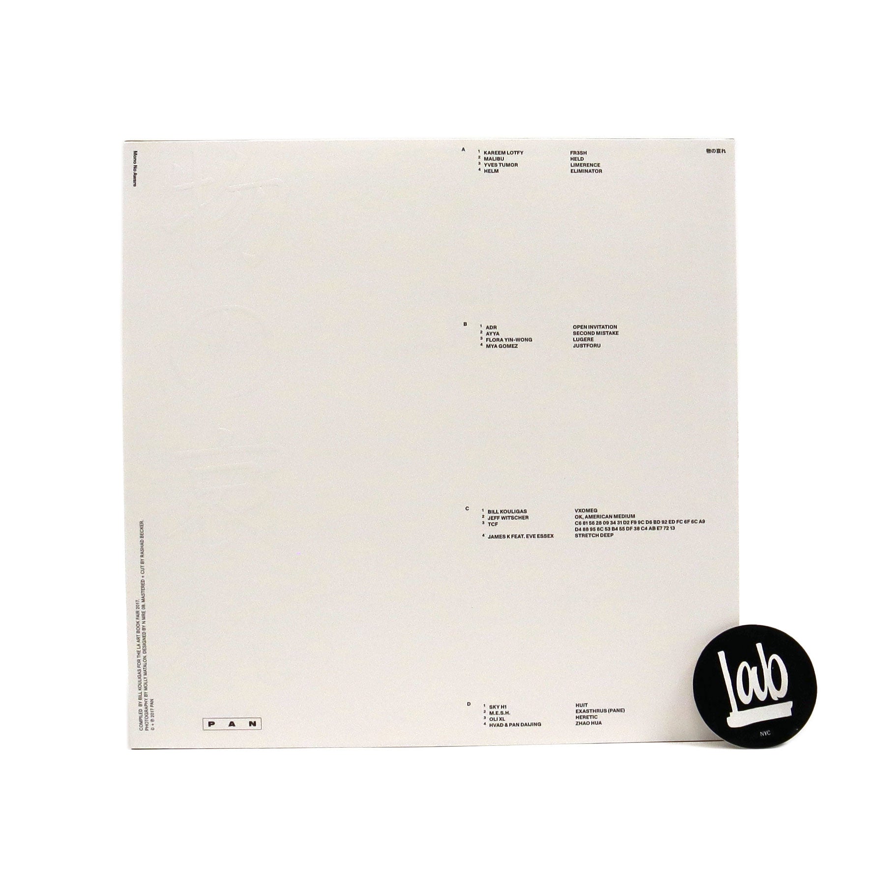 Bill Kouligas' PAN imprint pulls out all stops for this glossy collection of tracks pushing the limits of what’s generally considered ‘ambient’, enlisting the likes of label regulars Yves Tumor, Jeff Witscher (Rene Hell), M.E.S.H., ADR (of Gatekeeper), Pan Daijing as well as James K and Kouligas himself (and many more). 'Mono no aware': a Japanese term for "the pathos of things", "an empathy toward things", "a sensitivity to ephemera,” or the awareness of impermanence… maybe we’re reaching, but unlike traditional ambient music, you really feel the beginning and ending of these tracks and lament their passing like the turning and dropping of autumn leaves. We can’t in good faith call it ‘ambient’ because it demands your full attention: Kareem Lotfy’s vaporous distillation of a certain slice of French trap, Yves Tumor’s heart-wrenching “Limerence,” Malibu’s intensely intimate ballad “Held,” and Helm’s cosmic steel mill “Eliminator” are some of the most arresting electronic music to surface in recent memory - and that’s just the first side!! Not to mention the gorgeous sleeve art; all around one of the best releases of 2017 for sure. Even Kanye couldn’t keep his hands off it. 2022 repress on orange colored vinyl, highly recommended.