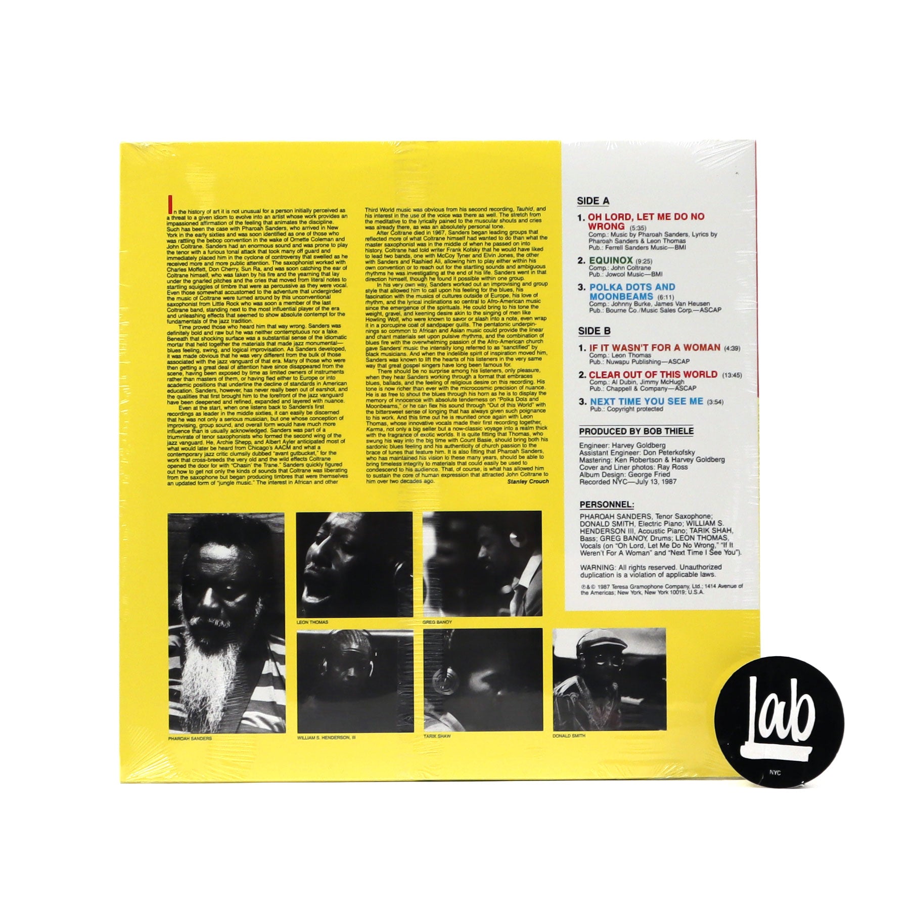 - featuring Pharoah Sanders (t. sax), Donald Smith (p), William Henderson (p), Tarik Shah (b), Greg Banoy (d), Leon Thomas (vox)