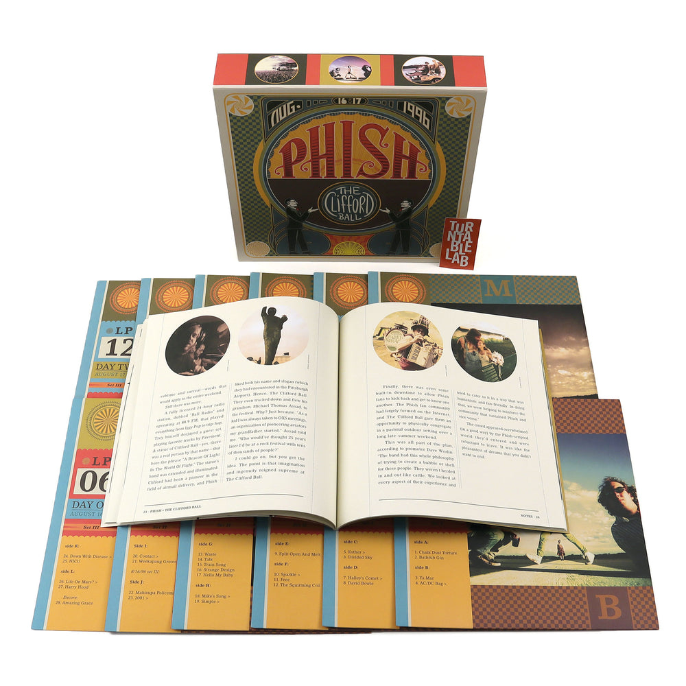 "For the 25th Anniversary of Phish’s acclaimed two-day festival The Clifford Ball, we’re thrilled to announce a brand new 12-LP Box Set featuring every note from Phish’s landmark concert that drew more than 70,000 fans to upstate New York in August of 1996. The Clifford Ball was held in Plattsburgh, New York, at a decommissioned Air Force base, during which Phish played two marathon concerts which included multiple guests. The box set features close to eight hours of music, fully mixed and mastered, with six complete sets recorded live August 16 & 17, 1996 and pressed on a whopping 12-LPs with audio recorded by Paul Languedoc and vinyl mastered and lacquers cut by Chris Bellman at Bernie Grundman Mastering. In addition to the 12 vinyl discs, the deluxe box set includes a 40+ page book with extensive liner notes by Parke Puterbaugh and photographs from the weekend by Danny Clinch." - Jemp Records
