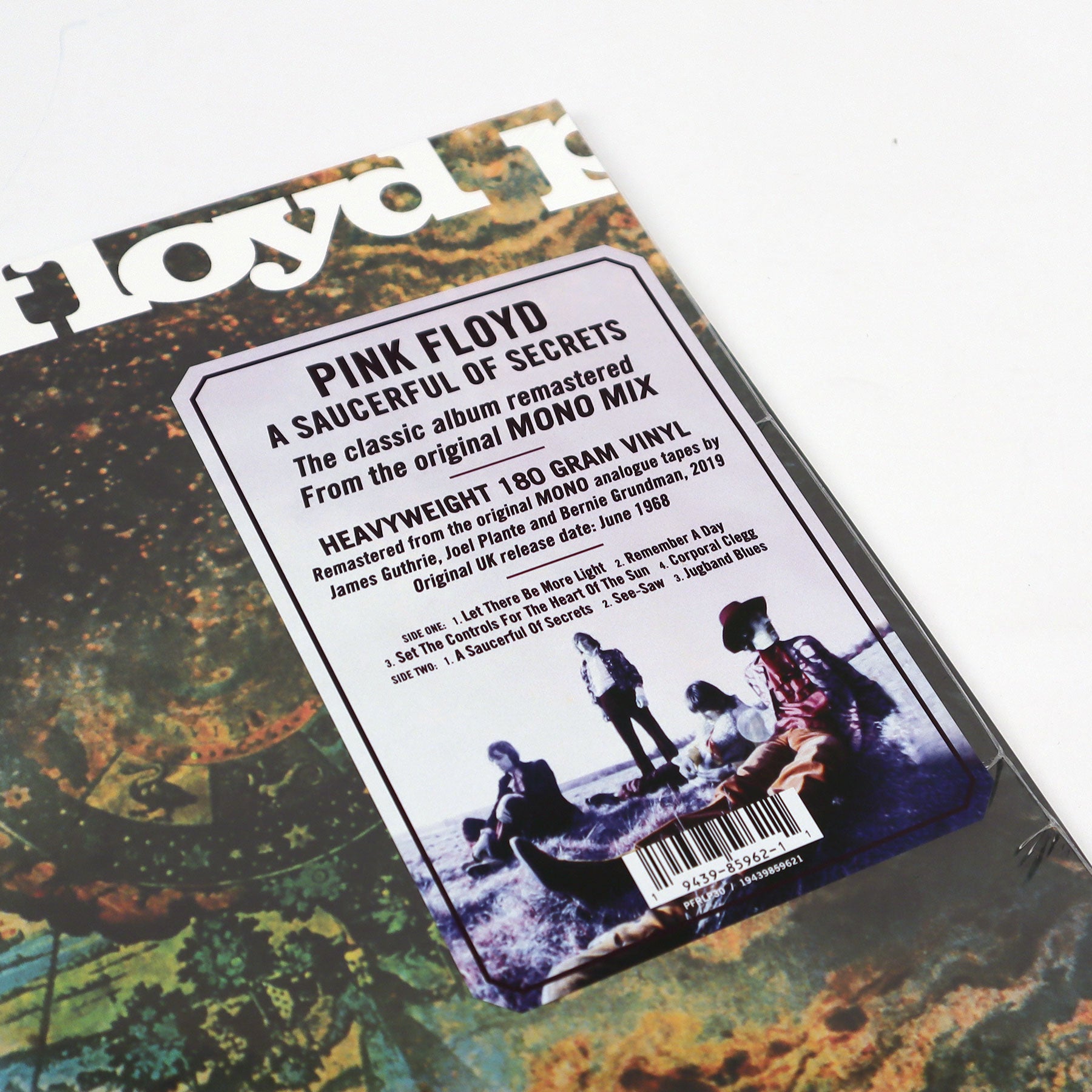 "Released as a limited edition for Record Store Day in 2019, the original mono mix of Pink Floyd’s A Saucerful of Secrets has been remastered by James Guthrie, Joel Plante and Bernie Grundman from the 1968 analog tapes. Pressed on 180 gram vinyl, it will be presented in a black, poly-lined inner sleeve inside a reproduction of the original LP sleeve. With classics like 'Set the Controls For The Heart Of The Sun', 'Remember a Day' and 'Jugband Blues', A Saucerful Of Secrets is the only album to feature the five band members: Roger Waters on bass and vocals, Richard Wright on keyboards and vocals, Nick Mason on drums, Syd Barrett and David Gilmour on guitar and vocals." - Pink Floyd Records