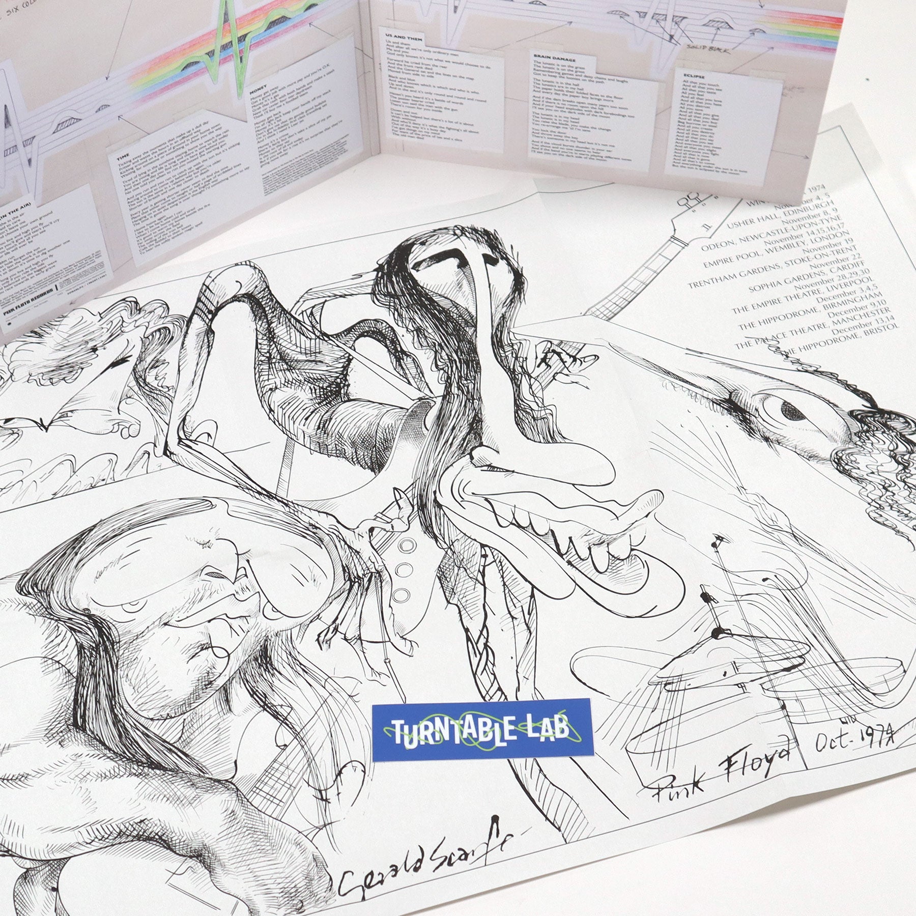 "One of the most iconic and influential albums ever, Pink Floyd’s The Dark Side Of The Moon celebrates its 50th Anniversary. Performed live in its entirety at Wembley 1974 (mixed by Andy Jackson). 180g vinyl in gatefold sleeve, with two posters featuring designs by Ian Emes and Gerald Scarfe. Cover design by Aubrey Powell of Hipgnosis and Peter Curzon of StormStudios, featuring the original 1973 line drawn cover artwork by George Hardie." - Pink Floyd Records