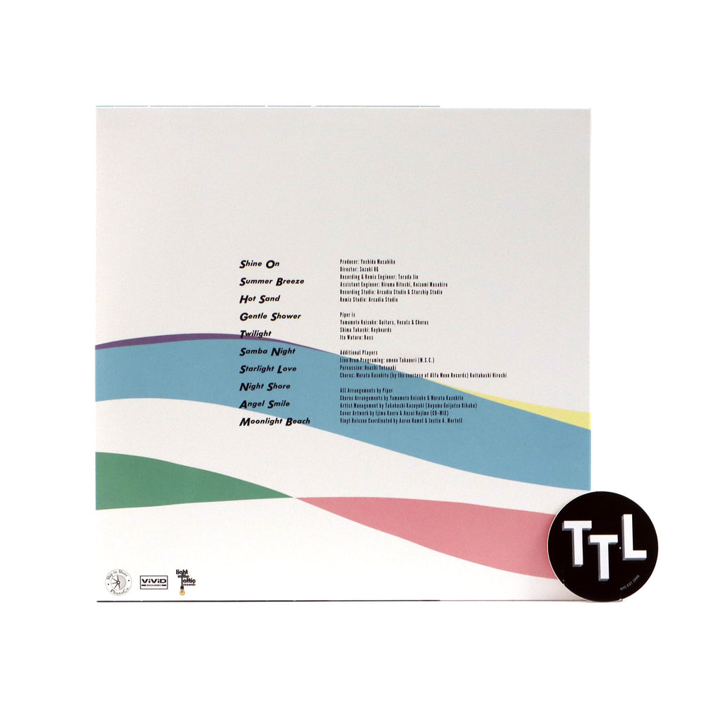 Good Weather! Good Sounds! Summer Breeze is Piper’s second album, originally released in 1983 on Yupiteru. Inspired by the sounds of Masayoshi Takanaka and Tatsuro Yamashita, as well as the concept of “BGM” (background music) championed by YMO, Summer Breeze was a conscious about face from their debut to create a new signature sound and become masters of summery resort vibes. Its smooth sounds belie the bevy of experimentation utilized on the recording, from vocoders and drum programming to recording guitars direct through the board. Even the iconic cover art, with the surfer wearing an impossibly short crop top, is deceiving in its simplicity – it was one of the most expensive jackets produced by the label at the time, due to its use of special spot colors and custom handlettering.