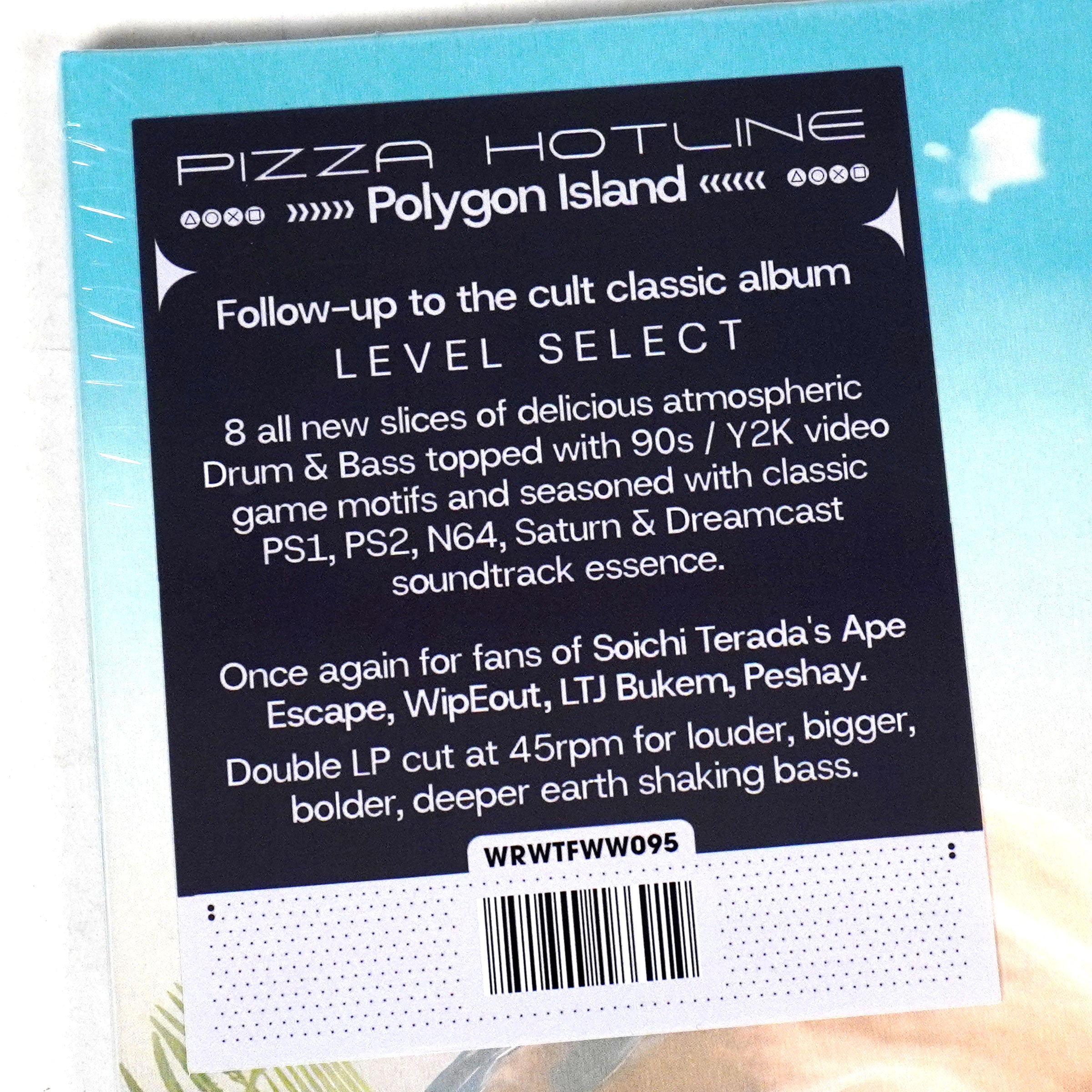 "WRWTFWW Records boiling with excitement: Pizza Hotline is back! The UK producer and DJ is following up the already classic Level Select with another liquid drum and bass with a video game music twist beauty: the Polygon Island album, available in a limited-edition double LP with a majestic 45rpm cut (for louder, bigger, bolder, deeper earth-shaking bass), packaged in a heavyweight 350gsm gatefold sleeve. Home of eight all new slices of delicious atmospheric drum and bass, Polygon Island is the perfect artificial paradise beach for Pizza Hotline to deepen his exploration of modern jungle music liquified through the lens of '90s/Y2K video game motifs and seasoned with the soundtrack essence of PS1, PS2, N64, Sega Saturn & Dreamcast adventures. Bewitching and larger than life, Pizza Hotline's perfect follow-up to Level Select takes listeners (players?) on an endless summer escapade filled with immaculate vibes, crispy beats, and refashioned homages to, once again, LTJ Bukem, Peshay, the Wipeout OST, and Soichi Terada's Ape Escape. It's bouncy, it flows, it's dreamy -- something to dance to, something to reminisce to, something to chill to. Pizza Hotline is back and it feels so good. Press start. Again." - WRWTFWW