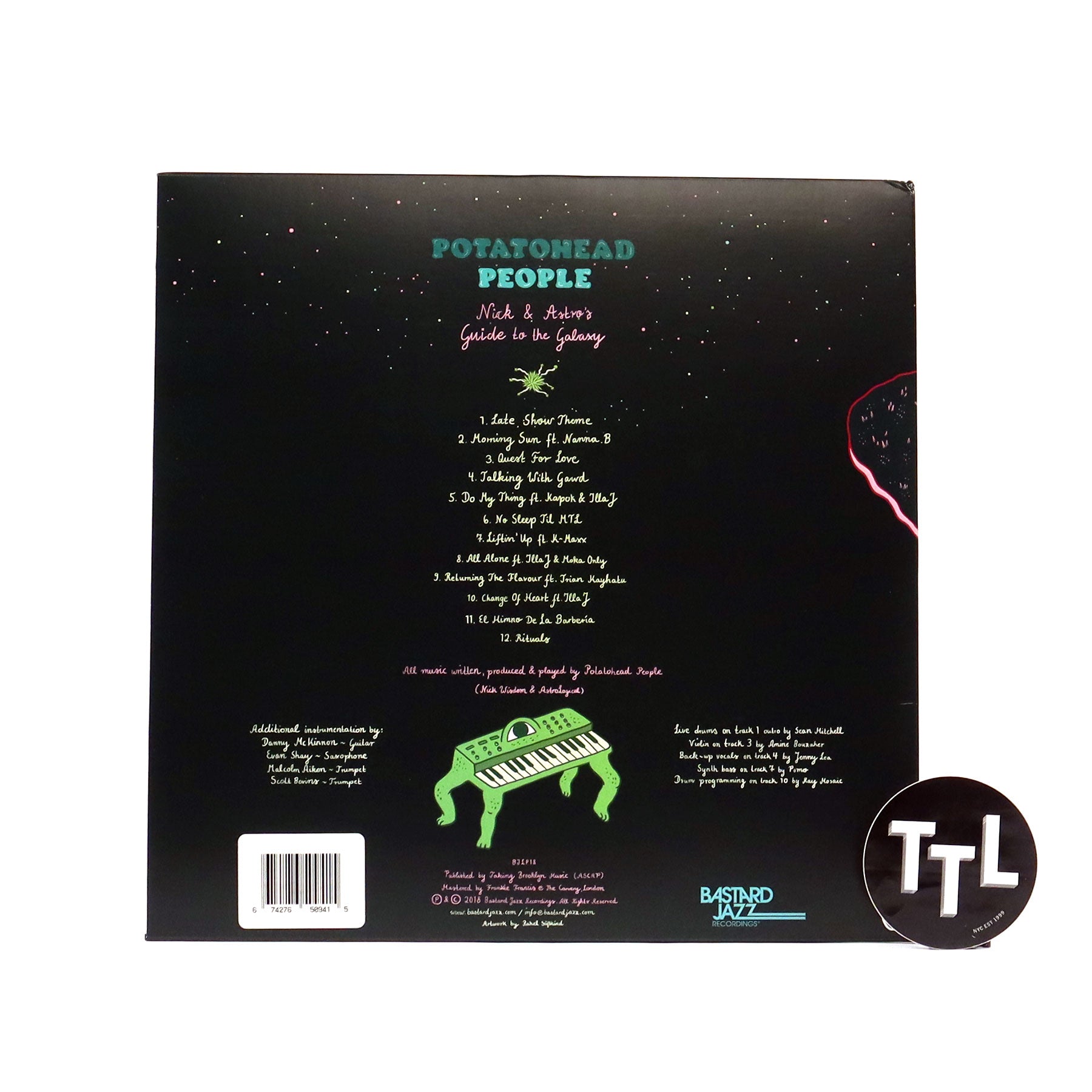"Finally, a re-issue of Potatohead People's bonafide classic second album Nick & Astro's Guide to the Galaxy - and on black & red splatter to boot. Comprised of Vancouver producers and multi-instrumentalists Nick Wisdom and Astrological, Canadian duo Potatohead People boast a number of noteworthy accolades thanks to a their signature sound drawing influences from 90's boom-bap, future soul, classic jazz, deep house and boogie/funk. Beginning with a series of EP's, including their landmark 'Kosmichemusik' EP, Potatohead People's productions quickly made their way to artists like Illa J who tapped the duo to produce his now critically acclaimed self-titled album, as well as producers like Kaytranada (who co-produced Illa J's 'Strippers' with the pair). Supporters such as Soulection, Nightmares on Wax, De La Soul, Pomo, DJ Spinna, Big Boi, and Phife Dawg have also played formidable roles in championing the sound of Potatohead People worldwide." - Bastard Jazz