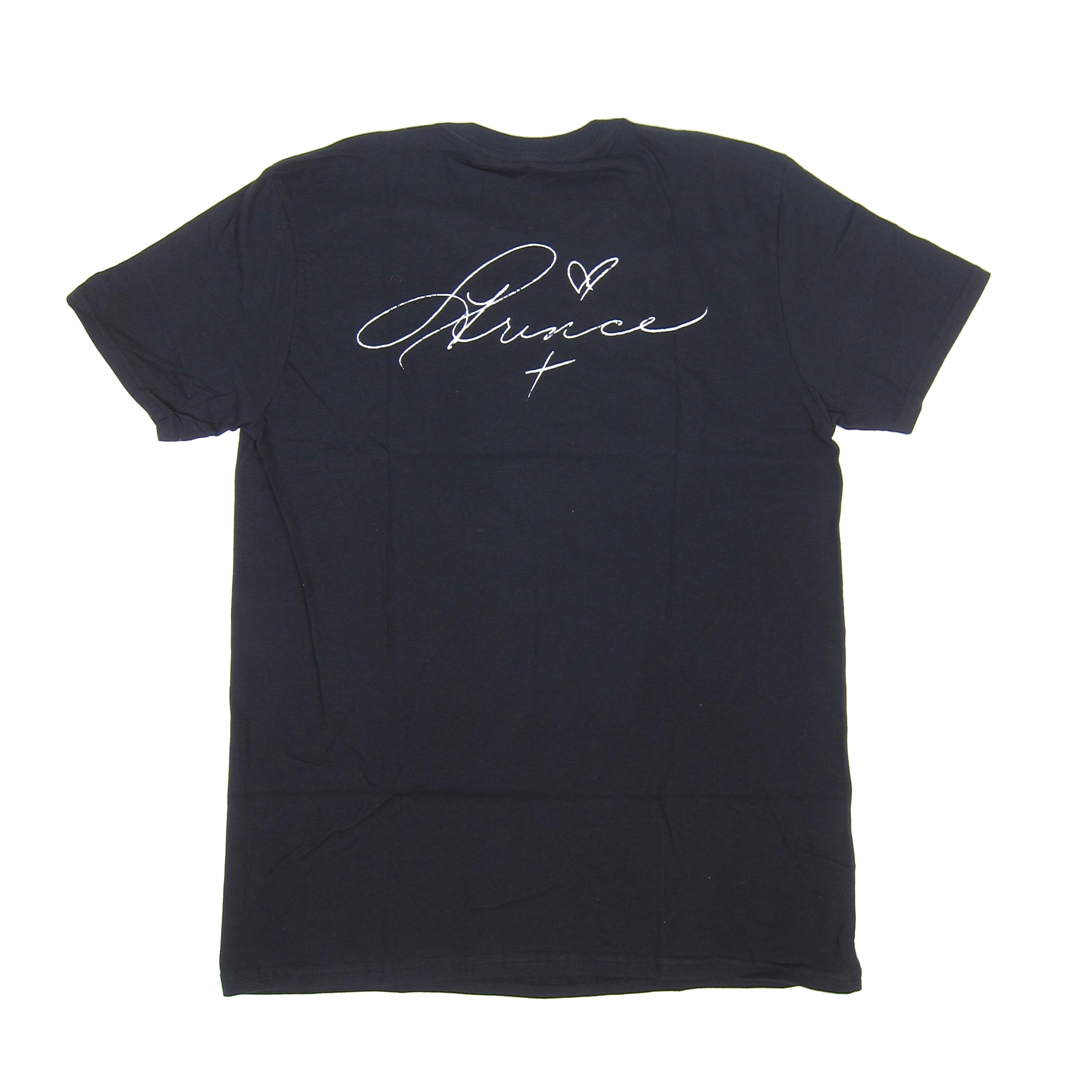 I just want your extra time and your.... Kiss. Iconic cover photo of Prince from his '86 album Parade (aka Under The Cherry Moon) gets the official shirt treatment. Bonus autograph print on the back (of course he dotted the "i" with a heart). Printed on 100% cotton, standard fit tees.
