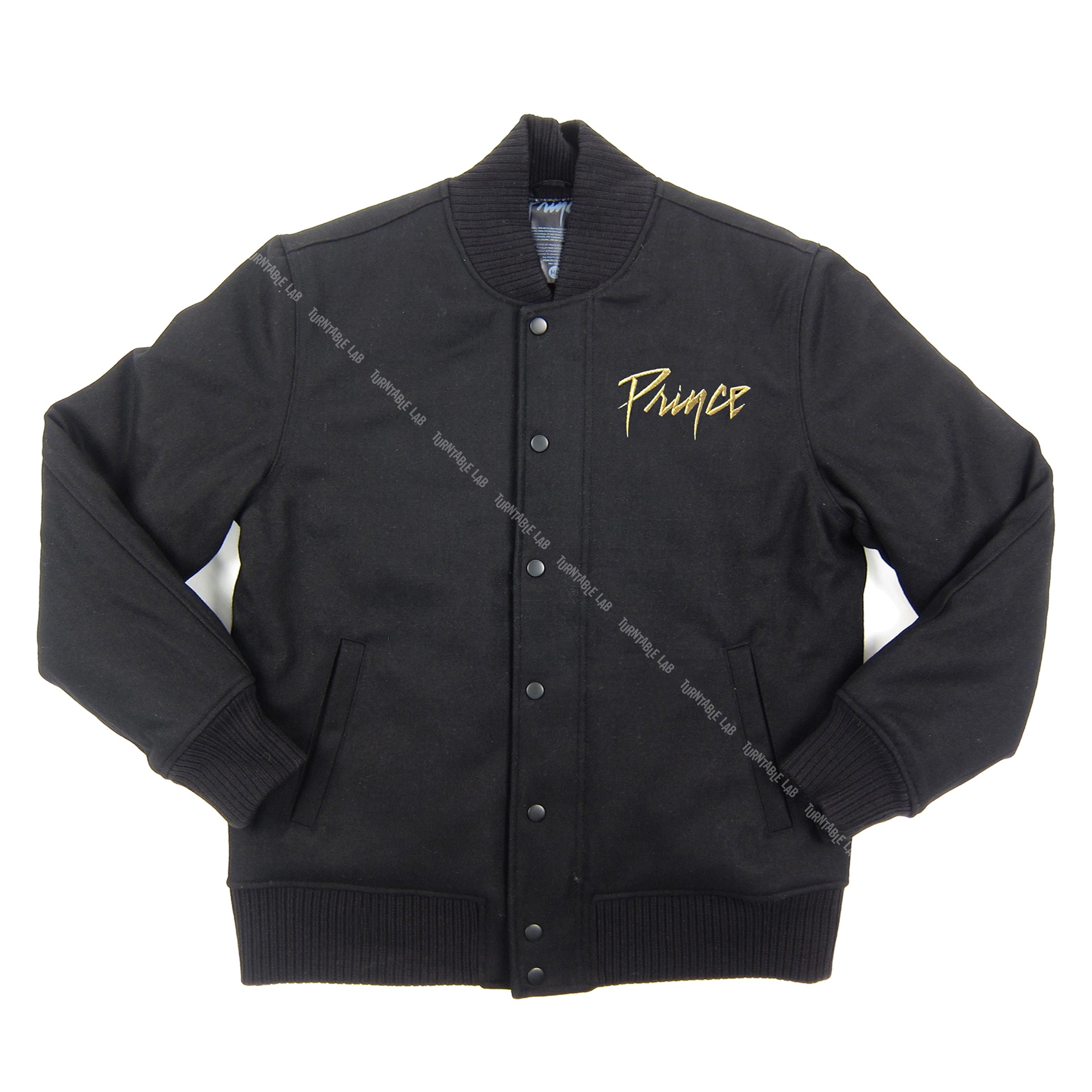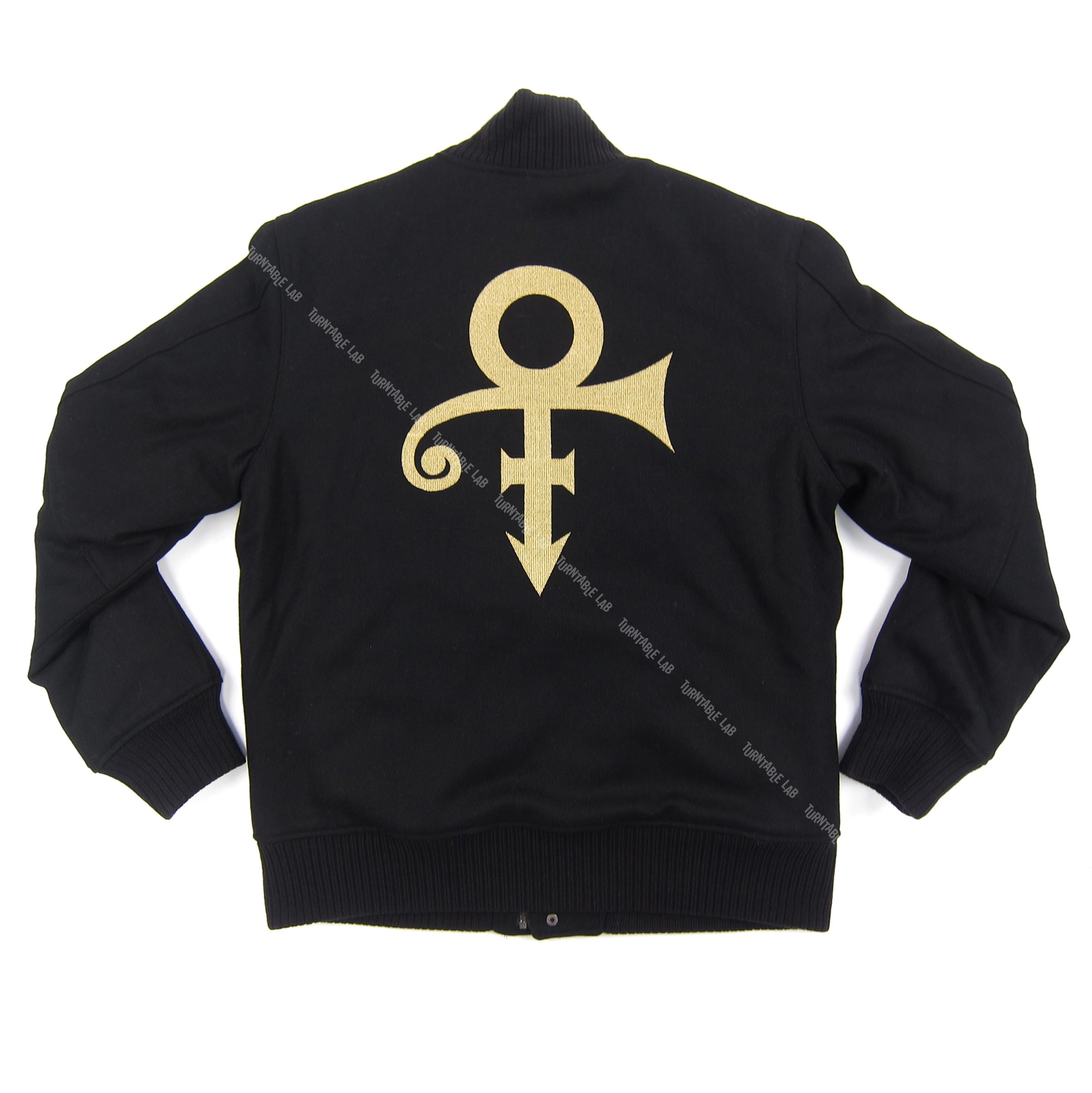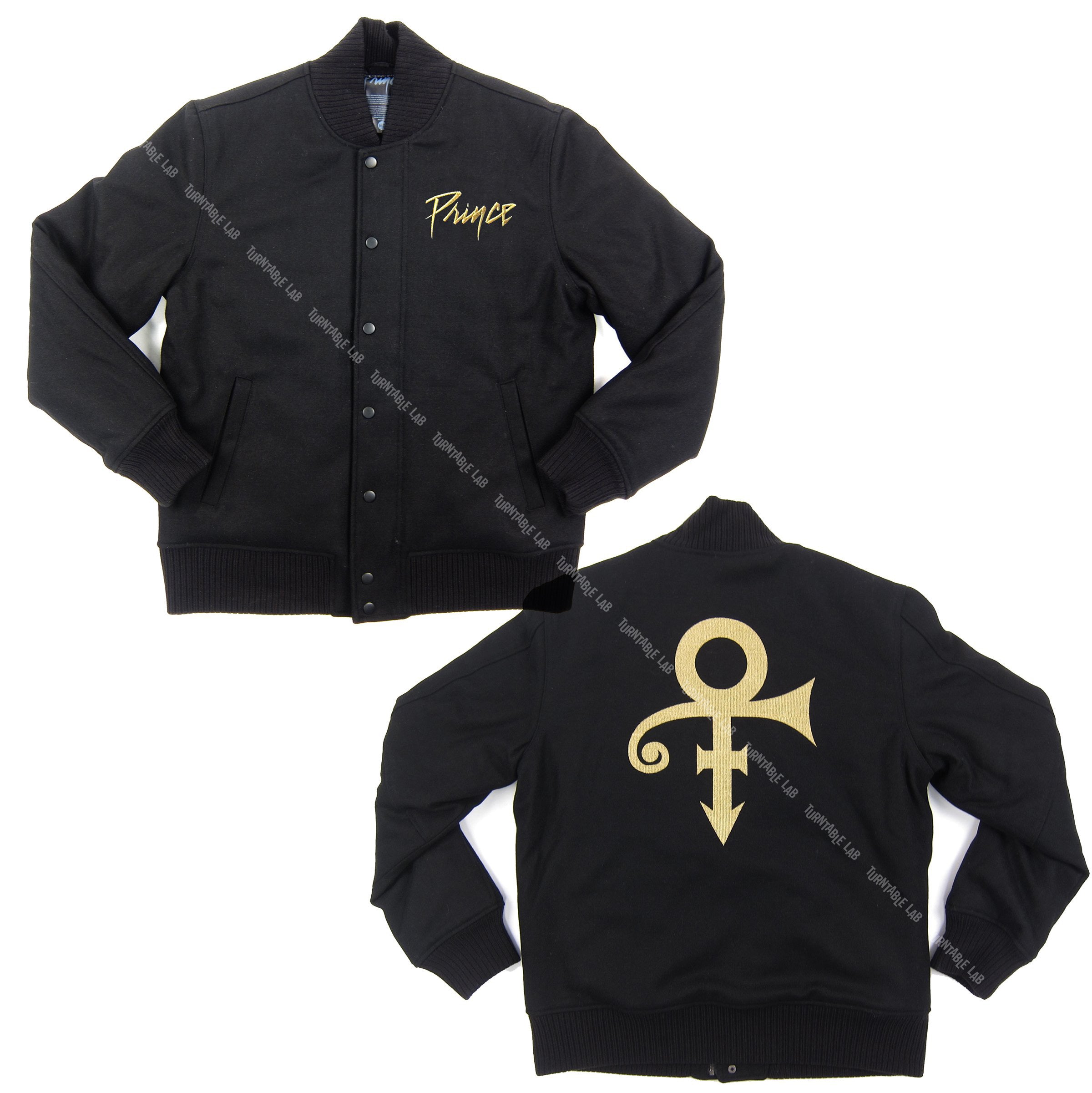 Essential piece for true Prince fans. This custom varsity jacket features a large symbol embroidery on the back, with small Prince logo embroidered on the front left chest. The shell is constructed of a wool-poly blend, and comes complete with quilted lining for extra warmth. Officially licensed by the Estate of Prince Rogers Nelson.