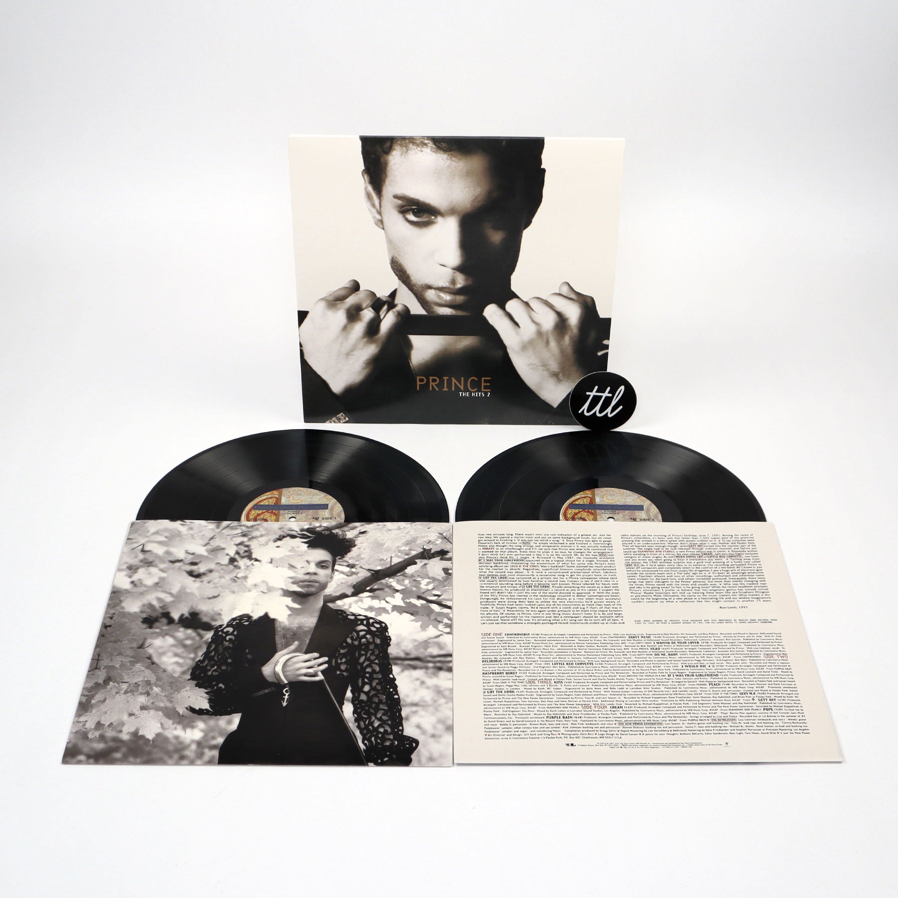 "Originally released in conjunction with The Hits 1 in 1993, The Hits 2 contains 18 tracks across two LPs, including some of Prince's most provocative singles from the first half of his career, including 'Head,' 'Dirty Mind,' and 'Gett Off' along with huge hits like 'Purple Rain,' 'Kiss,' 'Raspberry Beret,' and 'Little Red Corvette.' In addition to the 16 popular singles from his first 15 years as a recording artist, The Hits 2 also included the then-previously unreleased tracks 'Peach' and 'Pope'." - Paisley Park Records