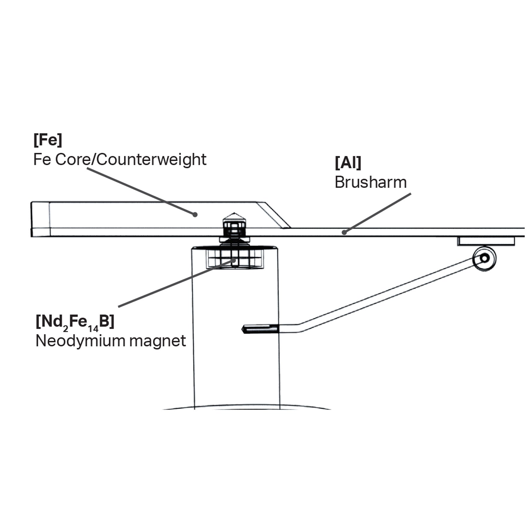 - highly efficient neodymium magnet stabilizes + adjusts for anti-skating