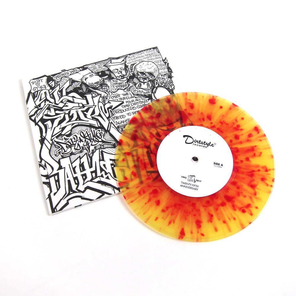 The gang's all here! The original Dirt Style collab battle record 2004 that brought together Skratchy Seal, Butchwax (Flare), Darth Fader (Qbert) and Unknown Dirtstyler (TripSpin) together on one disc. Classic scratch sounds, skipless sentences, and killer practice beats for days on this piece, now in handy 7" format. Limited edition yellow & red pressing, remastered and edited by DJ Qbert for Dirt Style's 25th anniversary.