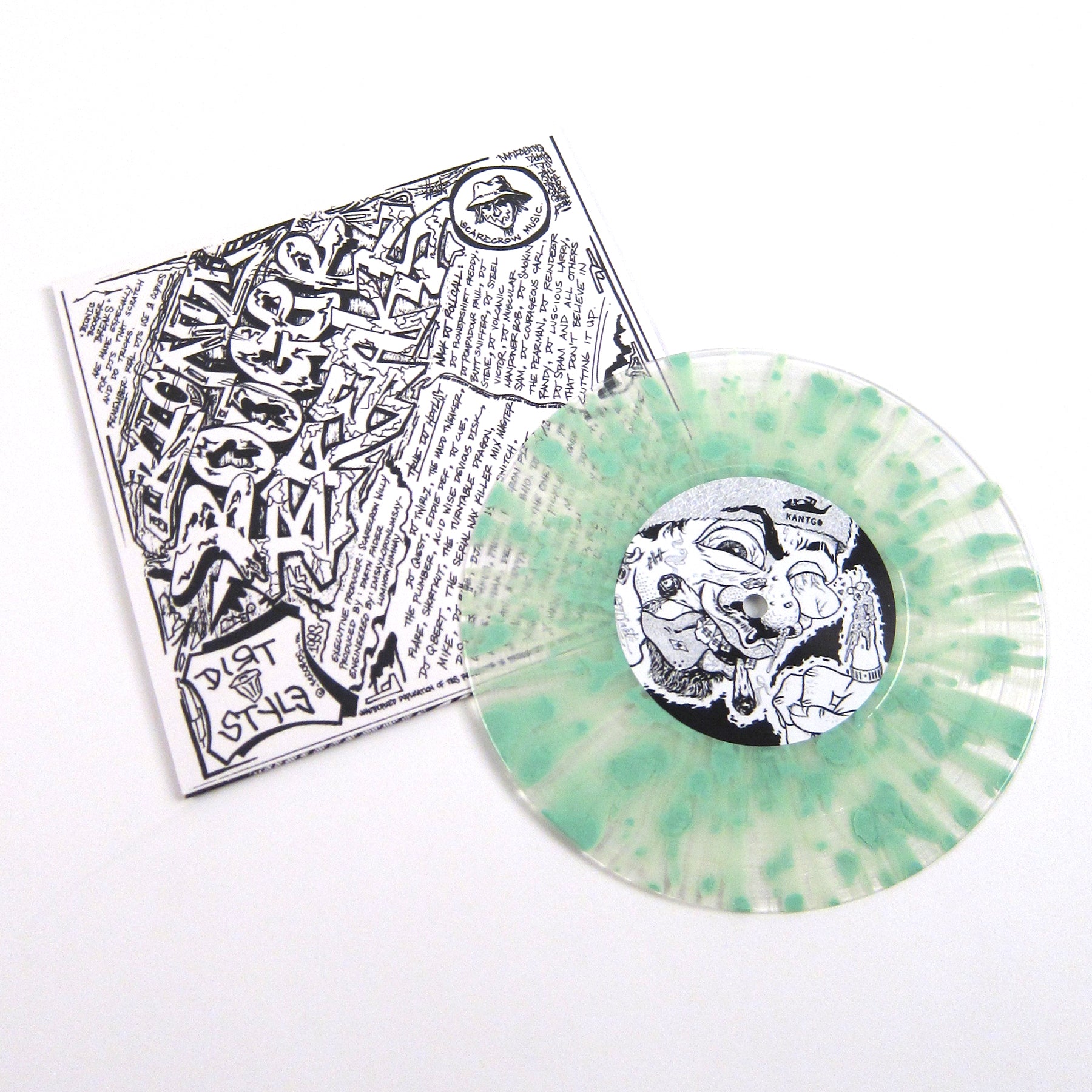 Now on 45 for the portable cut! Scratch heads know the deal, lots of memorable moments here. The "my uzi weighs a ton" beat never fails to make the heads nod. Fundamental skratch phrases (uh-uh-break-ahh-there-it-is). Gotta have the wheels before you get the girl. I don't really like doing reviews of classic records like this. Like Jeru said: talk is cheap, you're outlined in 50 cent hot dogs. Limited edition clear booger splatter pressing, remastered and edited by DJ Qbert for Dirt Style's 25th anniversary.