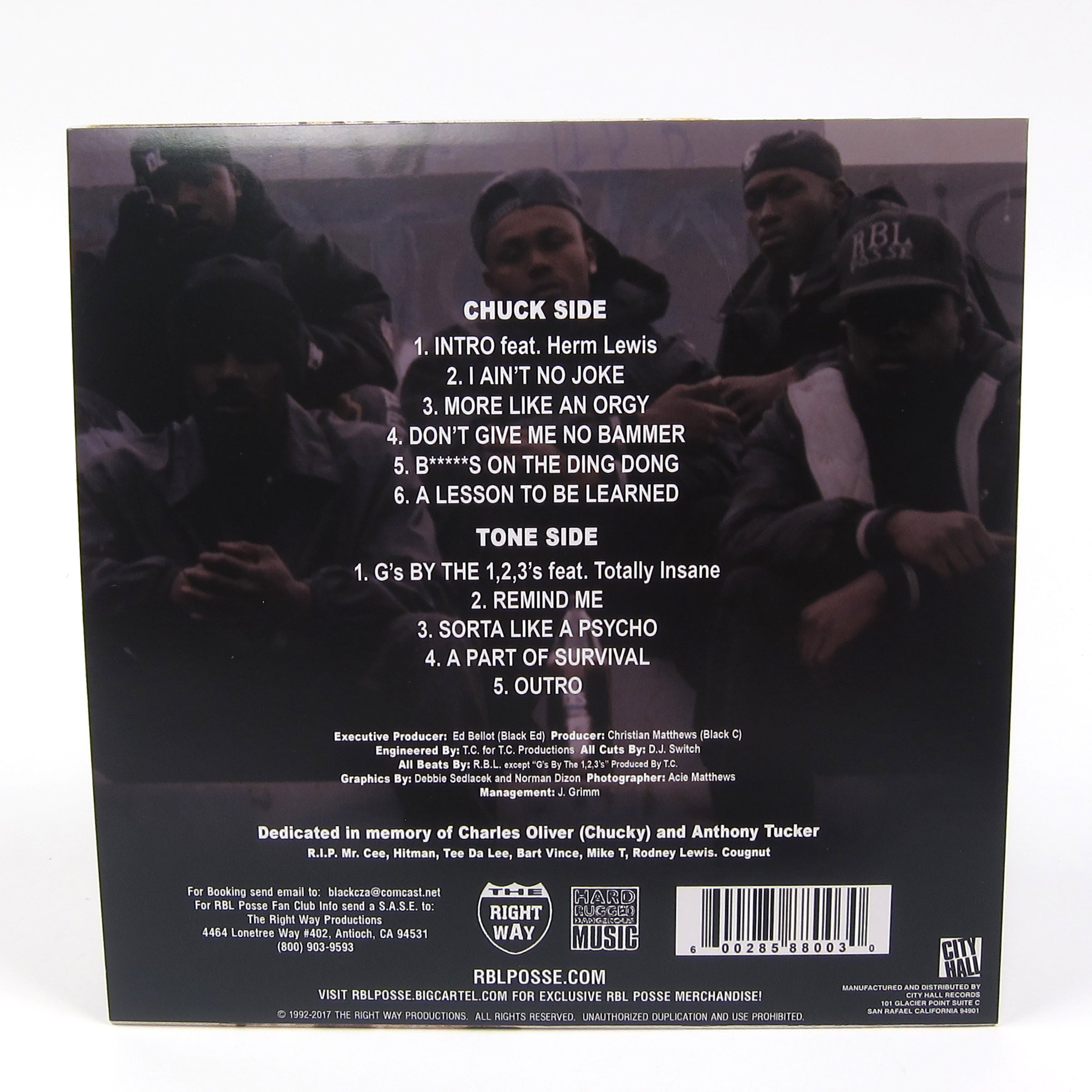 Debut studio album from San Francisco's RBL Posse. A Lesson To Be Learned was originally released in 1992 and helped set the framework for what would become the Bay Area Mobb Music sound. Most heads should be familiar with "Don't Give Me No Bammer," but there's much more to dig into here. Black C's production samples everything from The Isley Brothers to Simply Red, while the lyrics borrowed from the story telling style developed by artists like Slick Rick. Granted, Black C and Mr. Cee's delivery leaves a little to be desired, but their songs are filled with more than enough quotable moments and the two emcees play off each other with ease. This is real Bay Area rap that distilled a variety of influences into a unique, regional sound. To dig a little deeper checkout "More Like An Orgy," "A Lesson To Be Learned," and the Patrice Rushen sampling "Remind Me." Eleven tracks in all. Released by Right Way Productions on black vinyl housed in a replica sleeve.