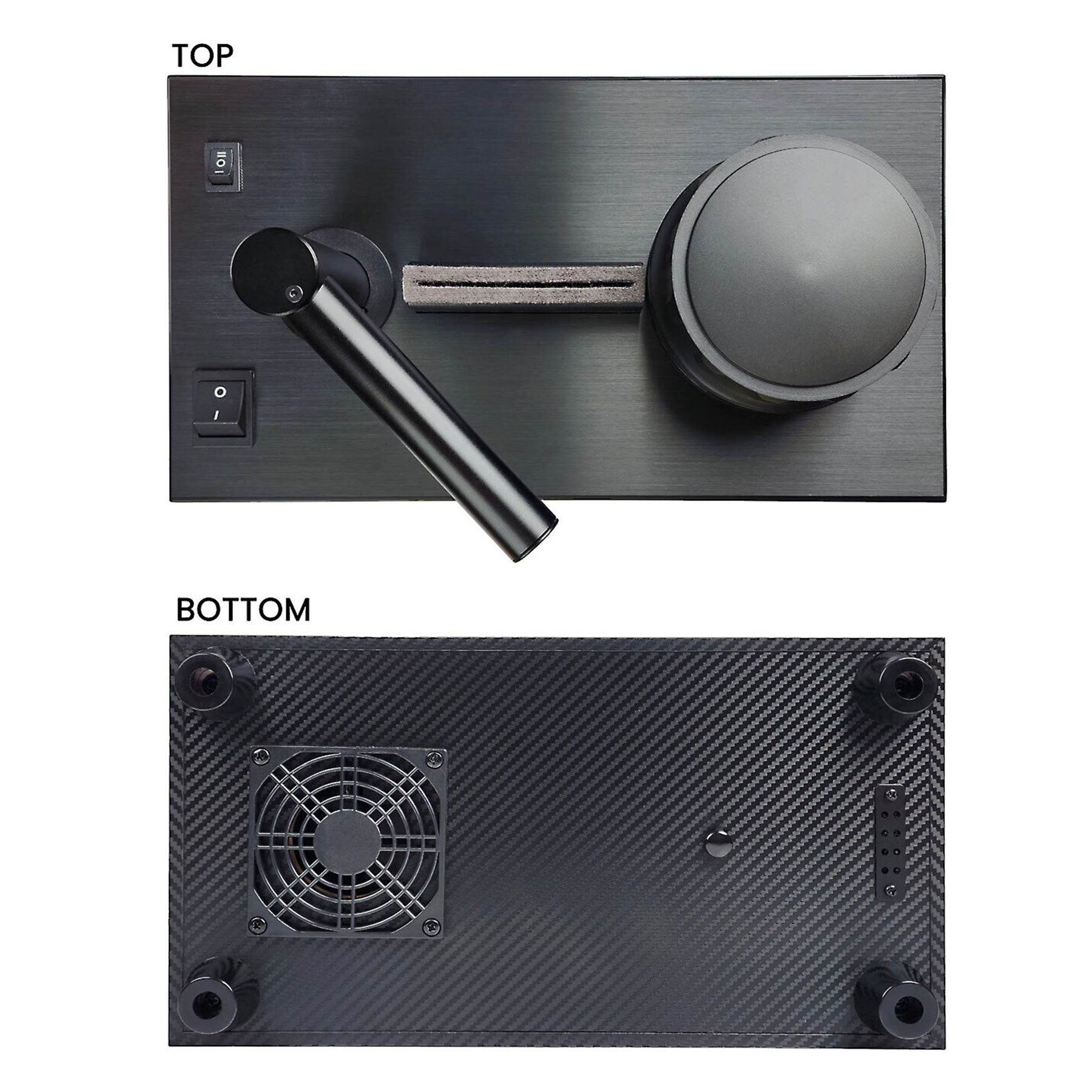 - bi-directional motorized platter and screw down clamp vs. manual operation