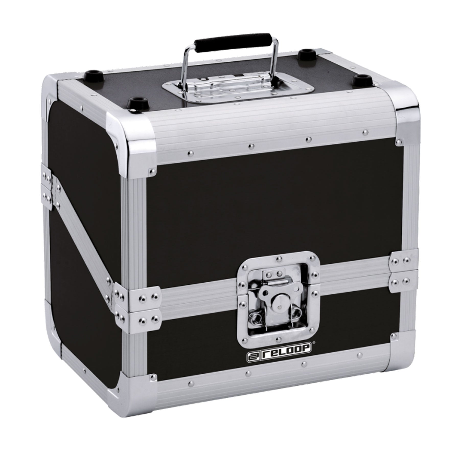 "The Reloop 80 Record Case with its slanted construction offers a maximum ease of use while digging for records due to the angular sloping design of the two halves. When in divided mode, the records in the front are superiorly visible and available, while the rearmost part of the records are superiorly supported and protected compared to a conventional 50/50 division. Reloop's case innovation." - Reloop