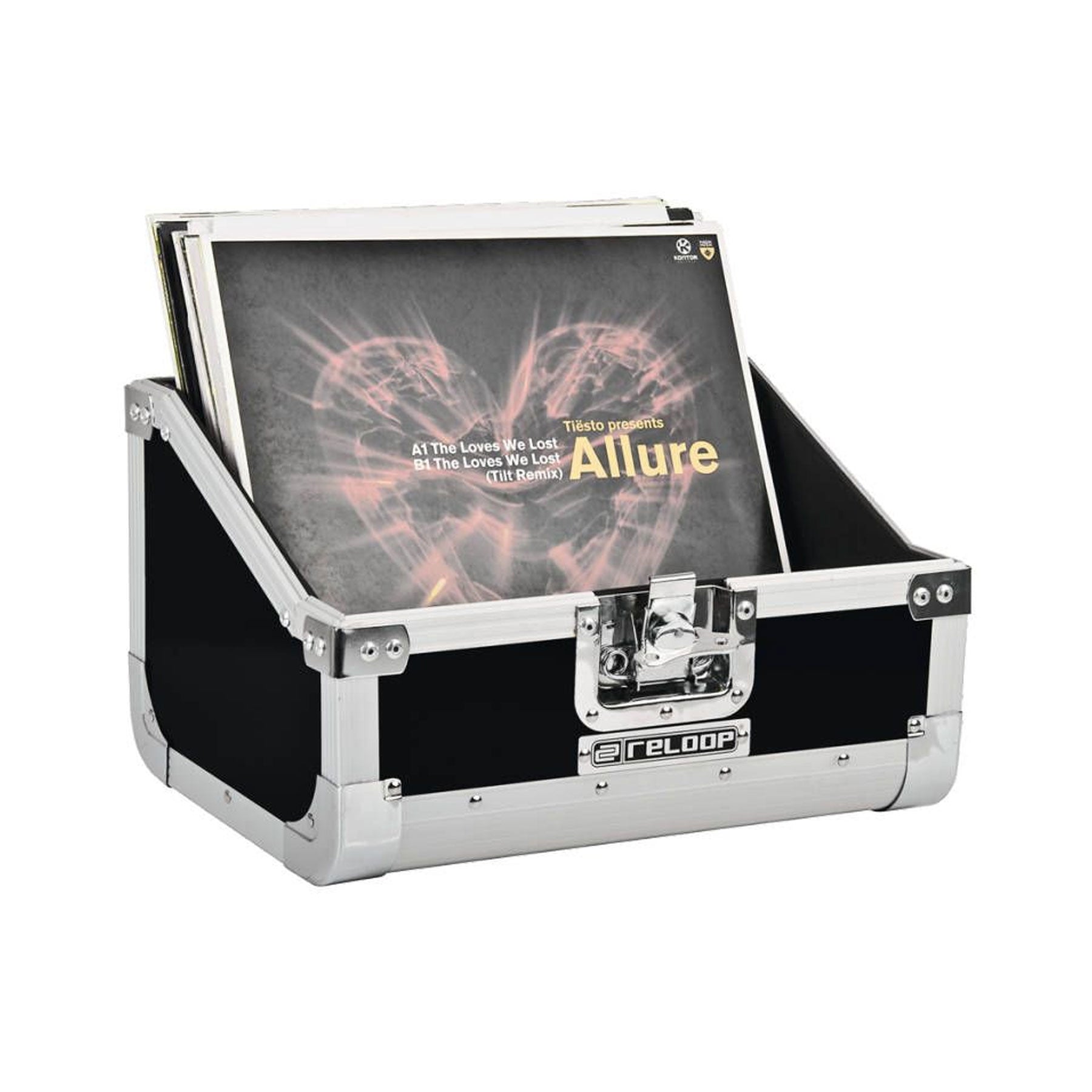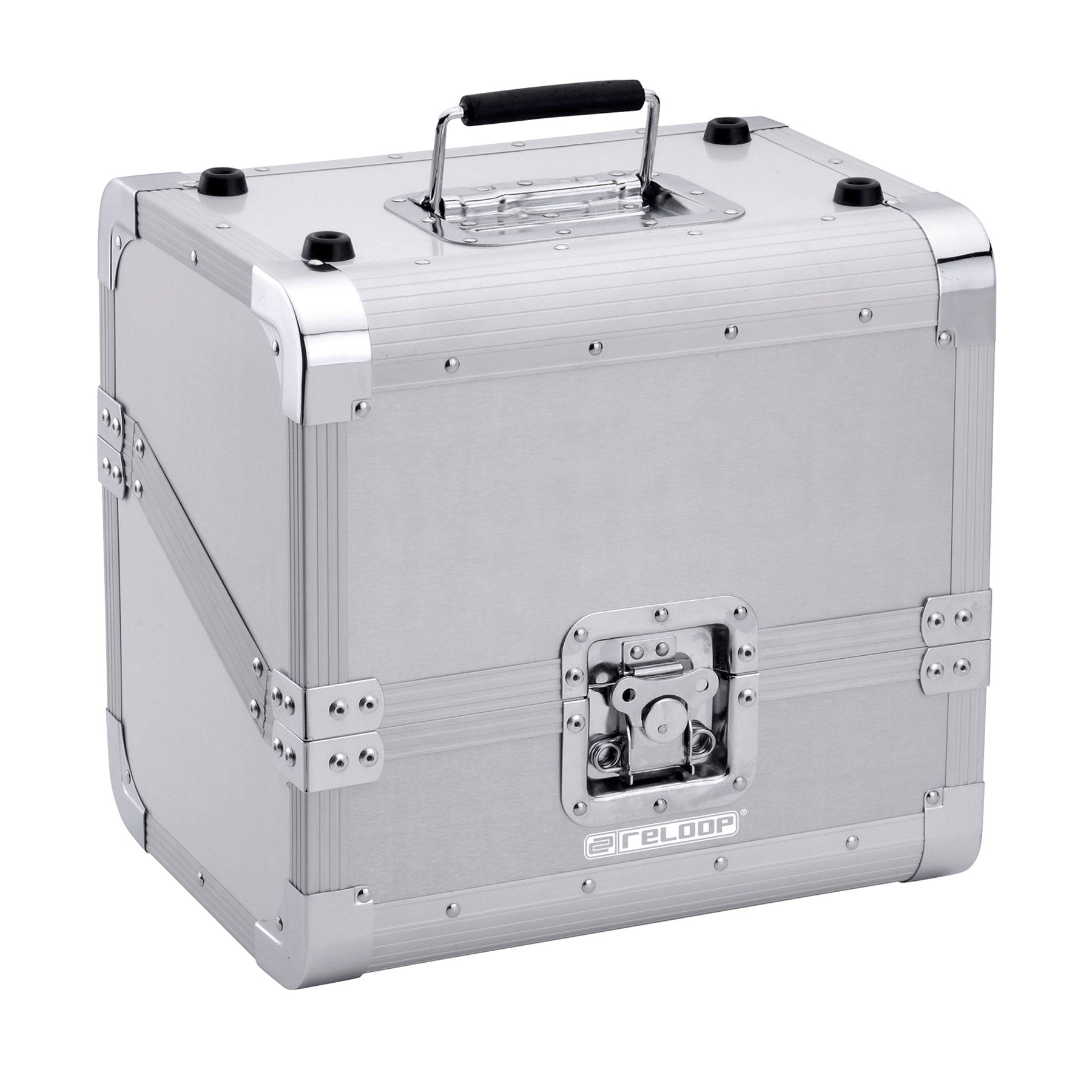 "The Reloop 80 Record Case with its slanted construction offers a maximum ease of use while digging for records due to the angular sloping design of the two halves. When in divided mode, the records in the front are superiorly visible and available, while the rearmost part of the records are superiorly supported and protected compared to a conventional 50/50 division. Reloop's case innovation." - Reloop