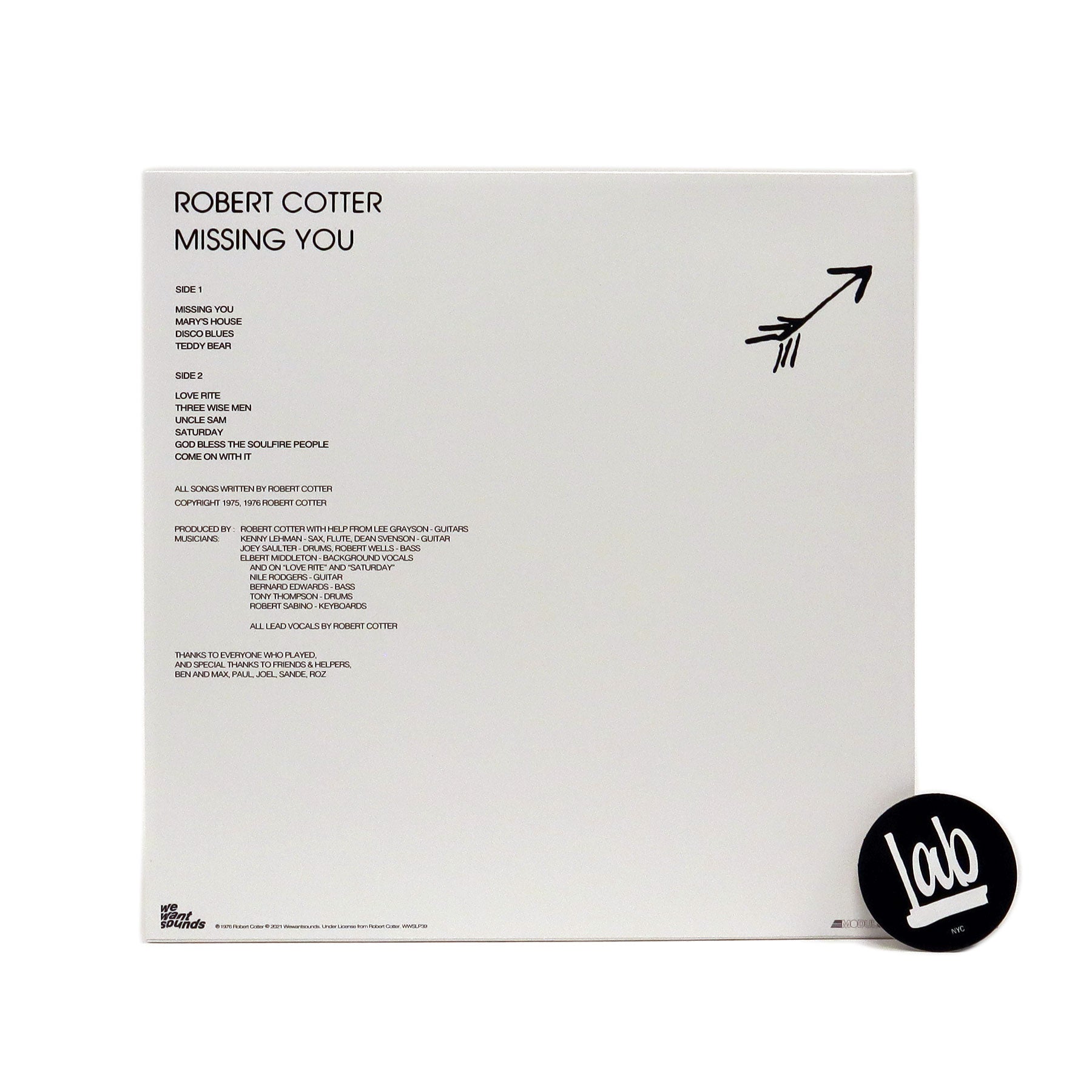 "Wewantsounds present a first time reissue of Robert Cotter's ultra-rare 1976 album, Missing You in partnership with Robert Cotter himself. Originally released on the notorious Tiger Lily label, the album was never properly released at the time and most copies were destroyed before they could hit record store shelves. The album, recorded in New York between 1975 and '76, is also Chic's earliest recording -- or The Big Apple Band as the group was known, which Robert Cotter was fronting at the time alongside fellow musicians Nile Rodgers, Bernard Edwards, Tony Thompson, and Robert Sabino. The album features a wide array of styles, from the funk of the title track and 'Disco Blues' to the soulful acoustic feel of 'Three Wise Men' and the conga-led mid-tempo groove of 'God Bless The Soulfire People'. The two Big Apple Band tracks, 'Love Rite' and 'Saturday' are not only great, but also give an insight into the origin of the Chic sound. These songs are historically invaluable as the group's only recordings just before it morphed into Chic (a remake of 'Saturday' would actually become a hit for Norma Jean Wright two years later produced by Rodgers/Edwards). The album finishes with the incredible 'Come On With It,' a politically-charged diatribe against Nixon featuring a darker psychedelic edge. When the album was pressed, Cotter got a few copies and never really heard back from the label. He moved on with his career -- performing and recording for various other labels -- and never really looked back on his debut album." - Wewantsounds