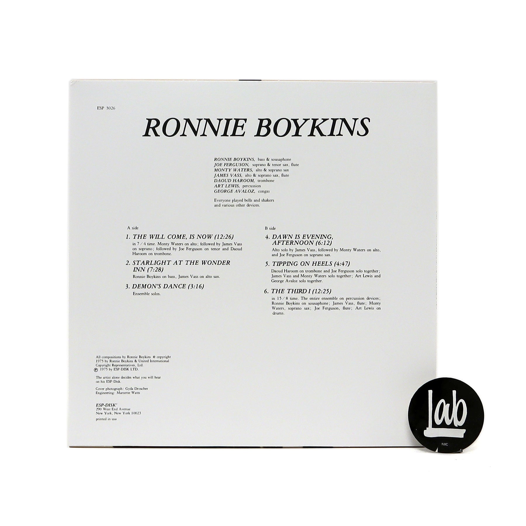 "Legendary Sun Ra bassist Ronnie Boykins stepped out on his own for his first and only release as a leader on The Will Come, Is Now. He was invited by ESP in 1964 to record his own album, and in February 1974, he told ESP that he was finally ready, and the session took place later that month. This recording not only features Boykins' solid abilities as a bassist, including his marvelous arco work, but also his talents as a composer and arranger. In addition, one is treated to an all-natural bass sound, a rare sound during this particular era of jazz history. In septet format, Boykins' six originals create a variety of moods and textures that not only evokes the music of Sun Ra but also reflects Boykins' own sensibilities as an artist. Original pressings, made just before ESP-Disk' went on hiatus for forty years and thus less common that other ESP LPs, often go for upwards of $150. 180 gram vinyl features original artwork." - ESP Disk