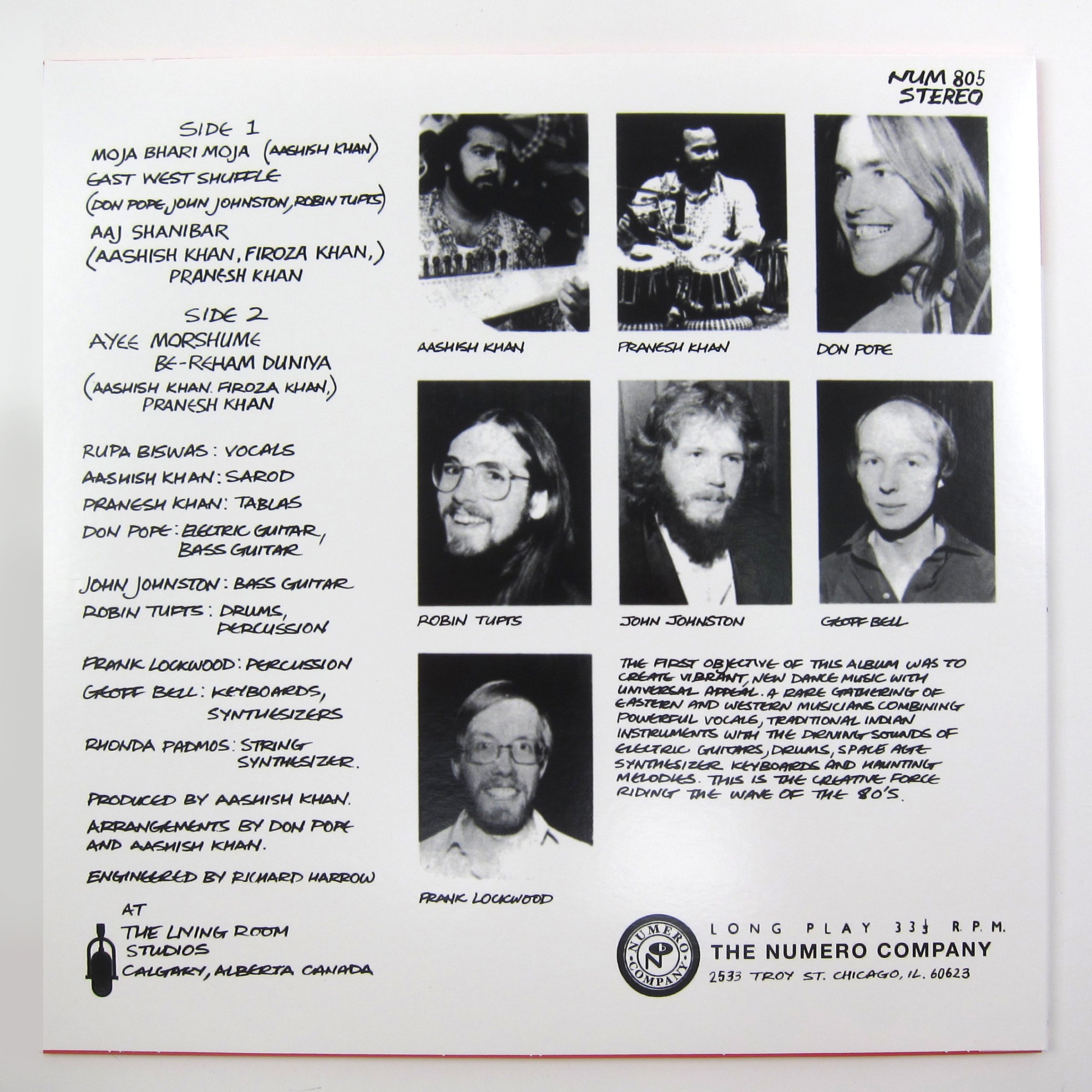 Highly sought after '82 Indian disco/fusion LP given first official reissue. This fiendishly elusive and addicting LP has been harder and harder to come by as original copies have topped out at upwards of $750 USD. Thanks to the power of the algorithm, the album (and specifically the track "Aaj Shanibar") reached a wider audience, pushing the demand for the LP - and thus a proper reissue - through the roof. While not straight disco, and certainly not jazz, Rupa Biswas' sole release from 1982 creates the perfect fusion platter: East meets West, synthesizer and guitars meet sarod, and Bollywood meets Balearic to create four brilliant cuts of musical genius. Recorded at Living Room Studios in Calgary by a "crack team" of Indian and Canadian studio cats, Rupa and the production crew groove through the tracks like a hot knife through butter. The opener, "Moja Bhari Moja" locks us in with the funky baseline and rhythm guitar before Rupa's vocal's steal the show. "East West Shuffle" sounds like a straight up ESG or Liquid Liquid cut, a sure-shot foot-stomper. The song most people may know is, as mentioned before, "Aaj Shanibar", which closes out the A-side. It's a beautiful cinematic sunset disco tune, a "cosmic disco killer" that'll be stuck in your head for months (in only the best way possible). Stretching itself over the whole of the B-side is "Ayee Morshume", the kind of cosmic disco that grooves through endless solos and mesmerizing vocals. This official reissue, remastered from the original analog source material with the permission and blessing of the producers + performers, is selling out fast, so DO. NOT. SLEEP!