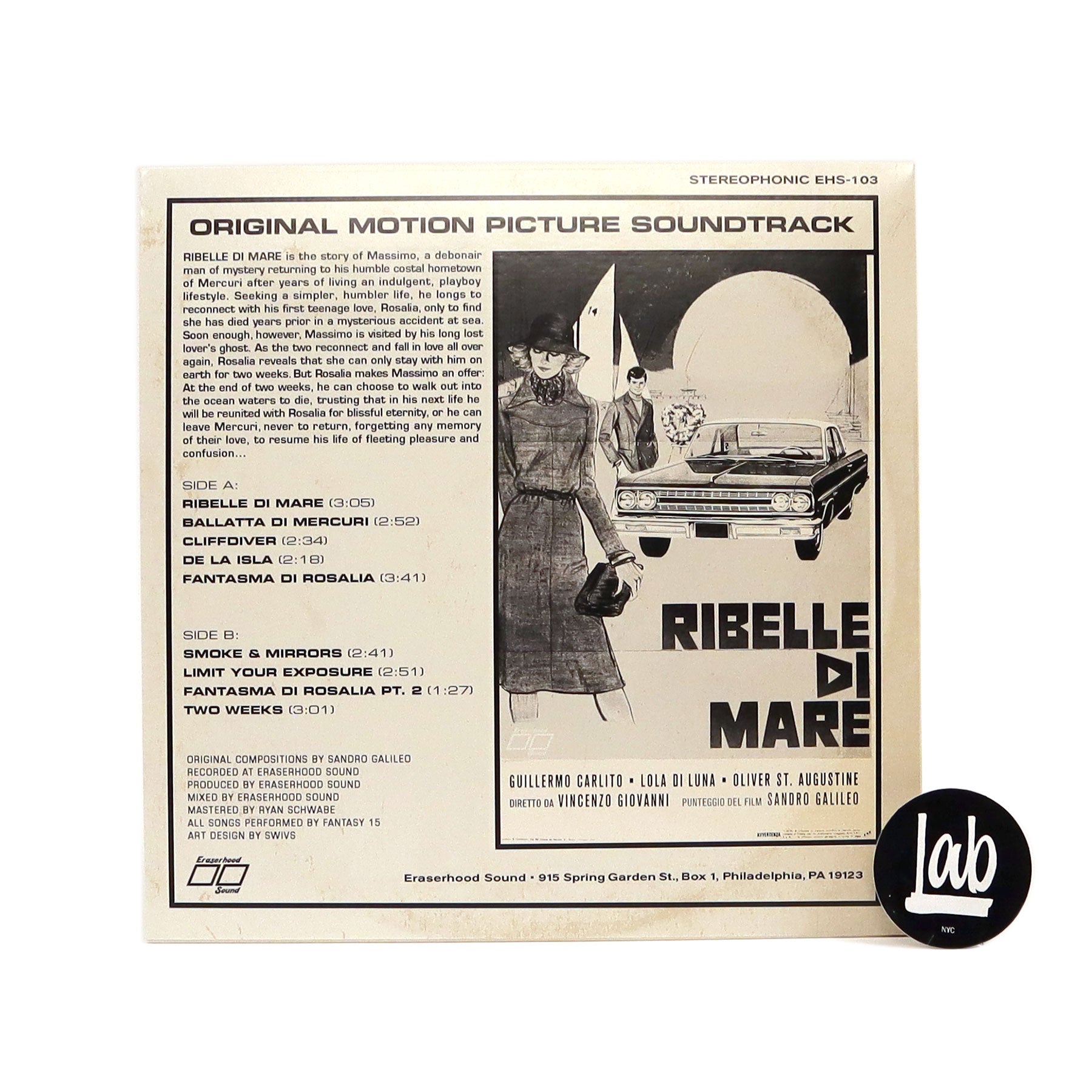 "In the fateful year of 2020, Vincent John and Maxwell Perla of Eraserhood Sound were fortunate enough to stumble upon the score to the long lost, never completed 1974 Italian film Riblle Di Mare. It was not long before they realized they had discovered an opus, written by legendary film composer Sandro Galileo in what was to be his final soundtrack. Only it never came to pass. The film was abandoned before it could be completed, and the ashes of Galileo’s final work were swept aside and forgotten. Until today. Eraserhood Sound is proud to present Ribelle Di Mare in all its glory, produced and performed by house band Fantasy 15 in their signature 'Synth & Soul' sound. Enjoy the nine stunning tracks that follow, which range in style from dramatic Philly Soul balladry, Spaghetti Western r&b, and Italian library funk." - Eraserhood Sound