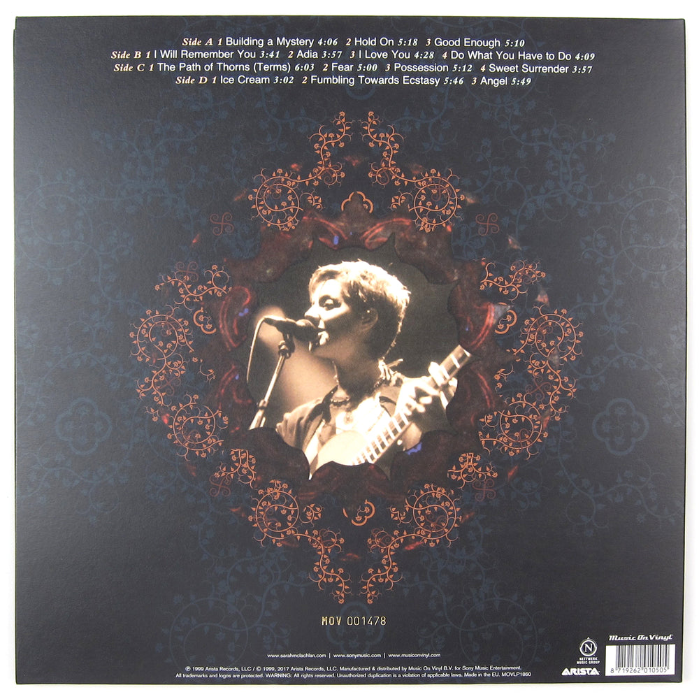 ”Mirrorball is a 1999 live album by Sarah McLachlan, compiled from performances during the Surfacing tour in 1997-98. Most of the 14 songs are from McLachlan's two most recent albums at the time, Fumbling Towards Ecstasy and Surfacing. Mirrorball entered the top 3 on both Billboard 200 and Canadian Albums Chart. The live performance of "I Will Remember You" was re-released as a single (having previously released in 1995 and 1996) and became a top 15 hit in Canada and the US, eventually winning the Grammy Award for Best Female Pop Vocal Performance.” - Music on Vinyl