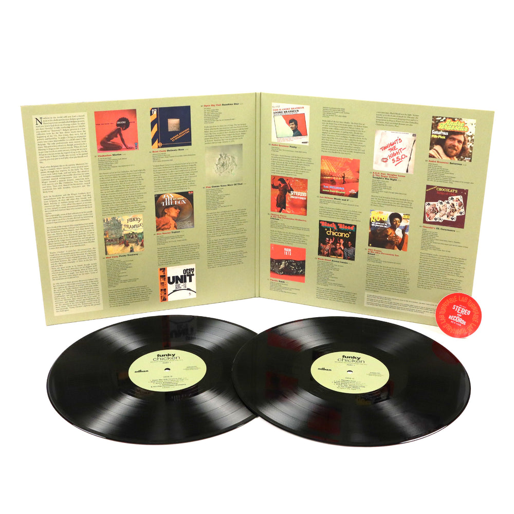 Who knew Belgium was so funky? Funky Chicken proves the nation known for waffles and beer also has a surprising amount of hidden funk in the trunk. This kind of music was pretty rare for Belgium in the 70's, but small groups of gifted musicians and composers still managed to create their own unique takes of afro-funk, latin, and soul. In the time of hit parades and variety orchestras, these kinds of songs were few and far between, but thankfully the Sdban label has done all the hard digging for you and put Belgium's funkiest nuggets all in one place. Check the killer sound from Chakachas, Open Sky Unit, Plus, Chicken Curry & His Pop Percussion Orchestra, Placebo, Les Helions, and more. Top shelf stuff spread over two LPs with detailed liner notes in the gatefold. Recommended.