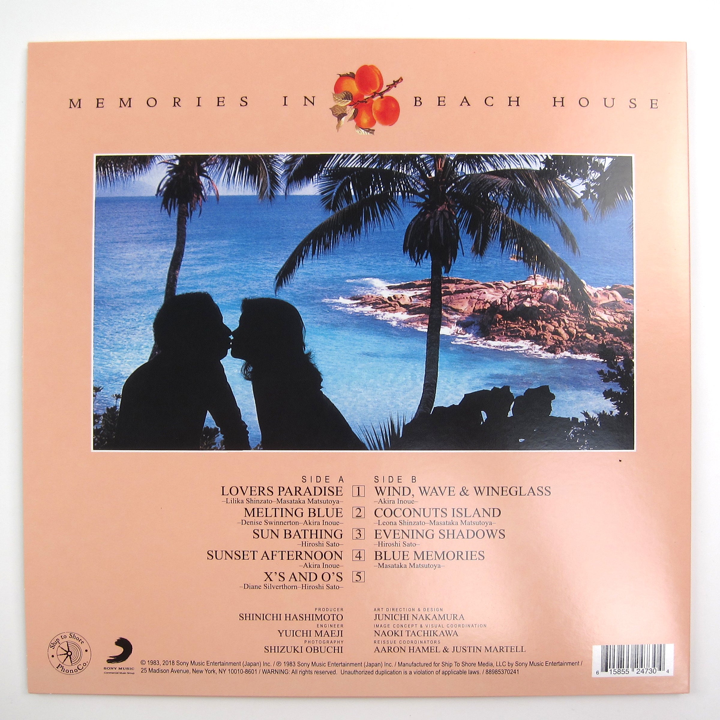 Wind, waves, wine glasses. Seaside Lovers' now legendary Memories In Beach House gets a long overdue vinyl reissue! Originally released in 1983, the collaborative effort by Hiroshi Sato, Akira Inoue, and Masataka Matsutoya delivers mellow J-fusion undulations and island vibrations, that recently enjoyed an uptick in popularity thanks to Youtube algorithms and the proliferation of vaporwave aesthetics (I would even go so far as to call this the OG a e s t h e t i c). The entire album takes smoothness to a whole 'nother level (it feels like an audible vacation) with highlights including "Evening Shadows," "X's And O's," the neo-exotica vibes of "Lovers Paradise," and the uber-breezy "Melting Blue." Original copies are hard to come by even in Japan. This official 2019 repress comes on translucent clear vinyl and features fully remastered sound by Sony Music. Fold-out poster of the cover art included. Recommended.