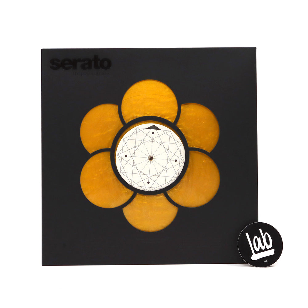 Special edition Sacred Geometry control vinyl pressing from Serato. Features a beautiful iridescent gold colorway ("shimmering with solor flare/eruption-like textures") and intricate "Egg Of Life" center label art, believed to represent balance, fertility, and health. Comes loaded with the latest control tone (CV02.5 Performance Series Control Tone) designed to deliver better wear characteristics, better tracking & more precise control. Comes in custom laser-cut, luxe black matte stock sleeve that allows the marbled color to show through. 2x control vinyl per pack.