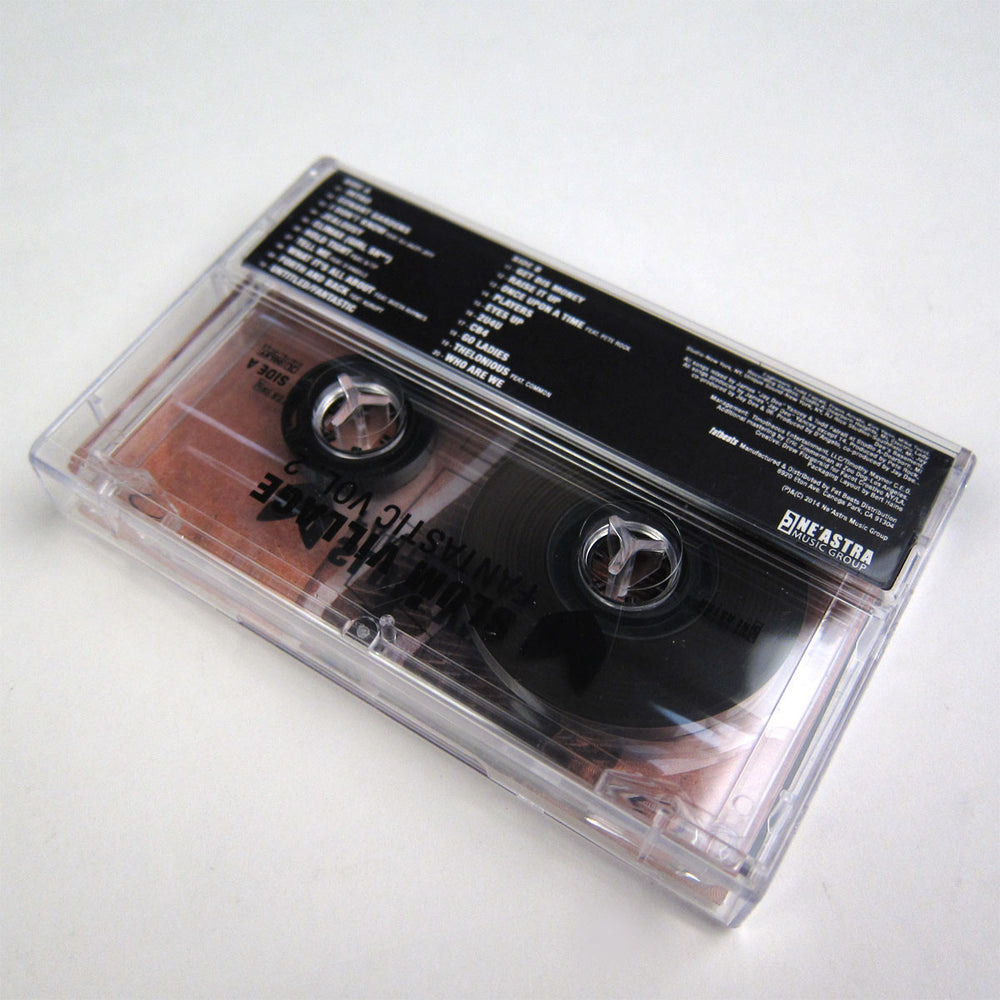 So much drama surrounded Slum Village's debut album: first they were dropped from Interscope, then Vol. 2 was released as a Euro import/boot, then they were picked up by Goodvibe, which put it out officially but later folded. The music was no less controversial - Swizz Beats keyboards were the rule and heads weren't ready for the loose, soulful beats and lazy rhyme styles. Jay Dee is an undeniably brilliant producer, and heat rises - Fantastic Vol. 2 is now widely regarded as a cornerstone of the Soulquarian sound. Okay, I'll admit Muhammed Baatin and T3 aren't my favorite rappers, but they do have a certain unique charm and they're pretty clever writers. And with a good range of styles and collabos with Pete Rock, Jazzy Jeff, Q Tip, D'Angelo, Busta and Kurupt the LP stays fresh to the end. "Players" is the catchy sleeper hit, with its beautifully layered singing melody, claps and subdued rhymes. On "Hold Tight" Q Tip says "This is the last time you'll hear me ... I'ma leave it in the hands of the Slum now." If only it were so. "Tell Me" features keyboards and singing by D'Angelo to get the panties wet. "I Don't Know" incorporates James Brown adlibs all through the verses and scratches by Jazzy Jeff. Pete Rock helps out with beats, verses and scratches on "Once Upon a Time." With 15 more tracks including "Fall in Love" and "Raise it Up." First time on cassette!