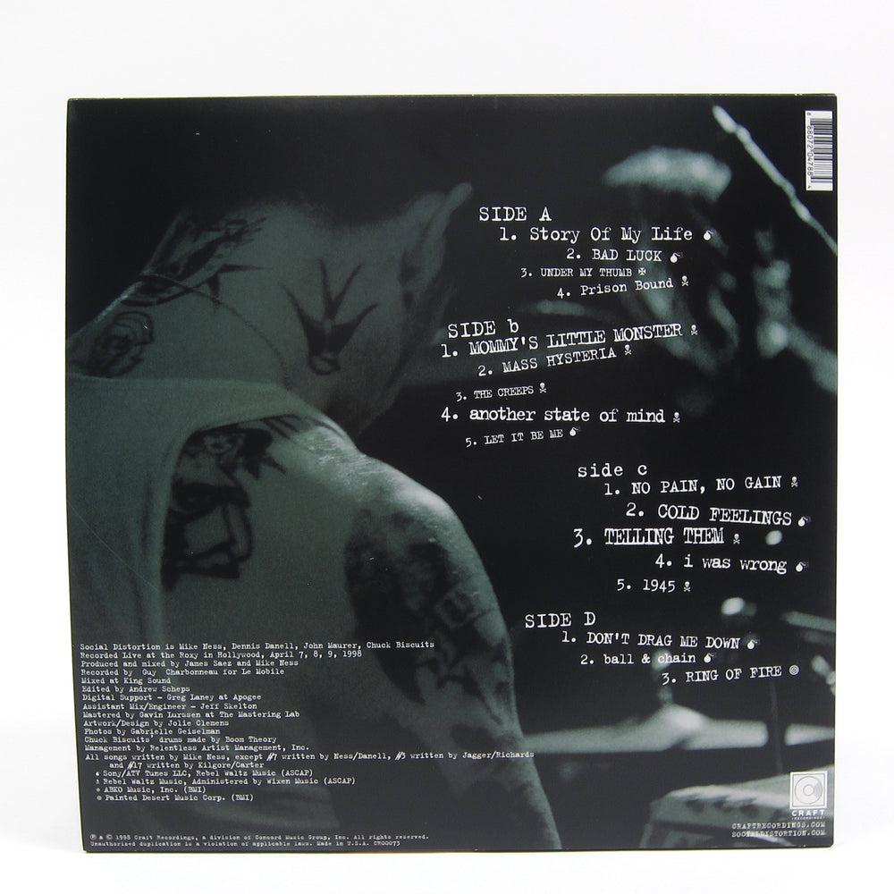 Live album from Fullerton, CA's Social Distortion. Live At The Roxy was originally released in 1998 and includes a mix of fan favorites and cover songs. It's a blistering set that covers all sides of their career up to that point. There's a sense of energy and passion that is often missing from the band's studio recordings. All in all Live At The Roxy is a solid and thrilling performance that captures the band at the height of their prowess. Includes the songs: "Story Of My Life," "Bad Luck," "Ball & Chain," and "Ring Of Fire." Seventeen tracks in all. Released by Craft Recordings on double vinyl housed in a full color sleeve with a replica of the rare poster that came with the original 1998 pressing.