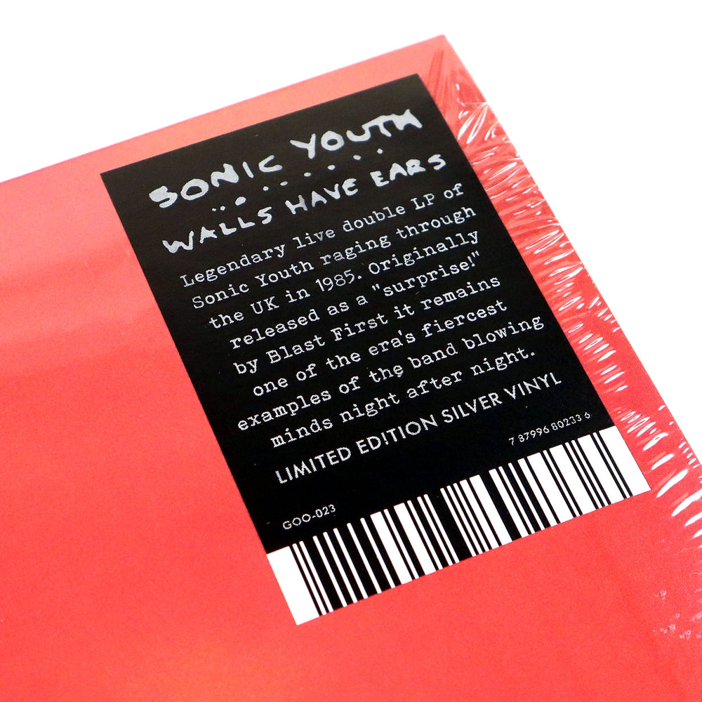 "Culled from three 1985 gigs in the UK during a transitional and transcendent time in the band’s story, Sonic Youth’s The Walls Have Ears appeared / disappeared as a 2LP set in 1986, not just a live album but an artful tapestry full of live experimentation with songs, between-song tape segues, darkness, humor and audio verité. It’s now issued for the first time officially under the band’s auspices. The ’85 shows were the second time the band appeared on UK soil, Brits now getting juiced to the mythos of the emerging guitar-slinging American independent underground; an art / punk band from NYC sporting casual attitudes and tees sporting Bruce Springsteen, Madonna, and Prince made some good press copy on top of their bludgeoning stage appearance. Paul Smith of the newly-founded Blast First label acted as an overseas diplomatic envoy for Sonic Youth through their SST years as well as issuing their classic 1988 Daydream Nation outside the USA. However the Smith-produced ‘bootleg’ of their ’85 UK gigs surfaced much to everyone’s surprise, just before EVOL was to be released. It turned out to be a marker of the group’s dissatisfaction that ultimately led to the release’s deletion, and the band and Smith parting ways after Daydream. In this 2LP set brimming with primitive classics like ‘The Burning Spear,’ ‘Death Valley 69,’ and ‘I’m Insane’ (uncredited on sleeve), segues and live guitar changes ooze together threaded by Madonna tapes and vocal loops off the board (somewhat a necessity for distraction until the band had a full fledged stage crew to prepare guitars). The first two sides of Walls are massive, cavernous, with newly-drafted drummer Steve Shelley. SY tear it up especially on one trash-fi excerpt of ‘Blood On Brighton Beach’ (actually ‘Making The Nature Scene’) from a legendary outdoor gig November 8th where [Thurston] Moore, [Kim] Gordon and [Lee] Ranaldo’s guitars treble-blast dissonant shockwaves over the black-stoned beach of Quadrophenia fame. The record’s second slab spotlights an April 1985 at London’s Hammersmith Palais and was one of the final appearances live of Bob Bert on drums, again featuring some molten takes on ‘Brother James,’ ‘Flower’ (listed as ‘The Word (E.V.O.L.)’), and others. This document remains an essential representation of some lean and mean years of the quartet’s throttling march out into the world." - Goofin Records