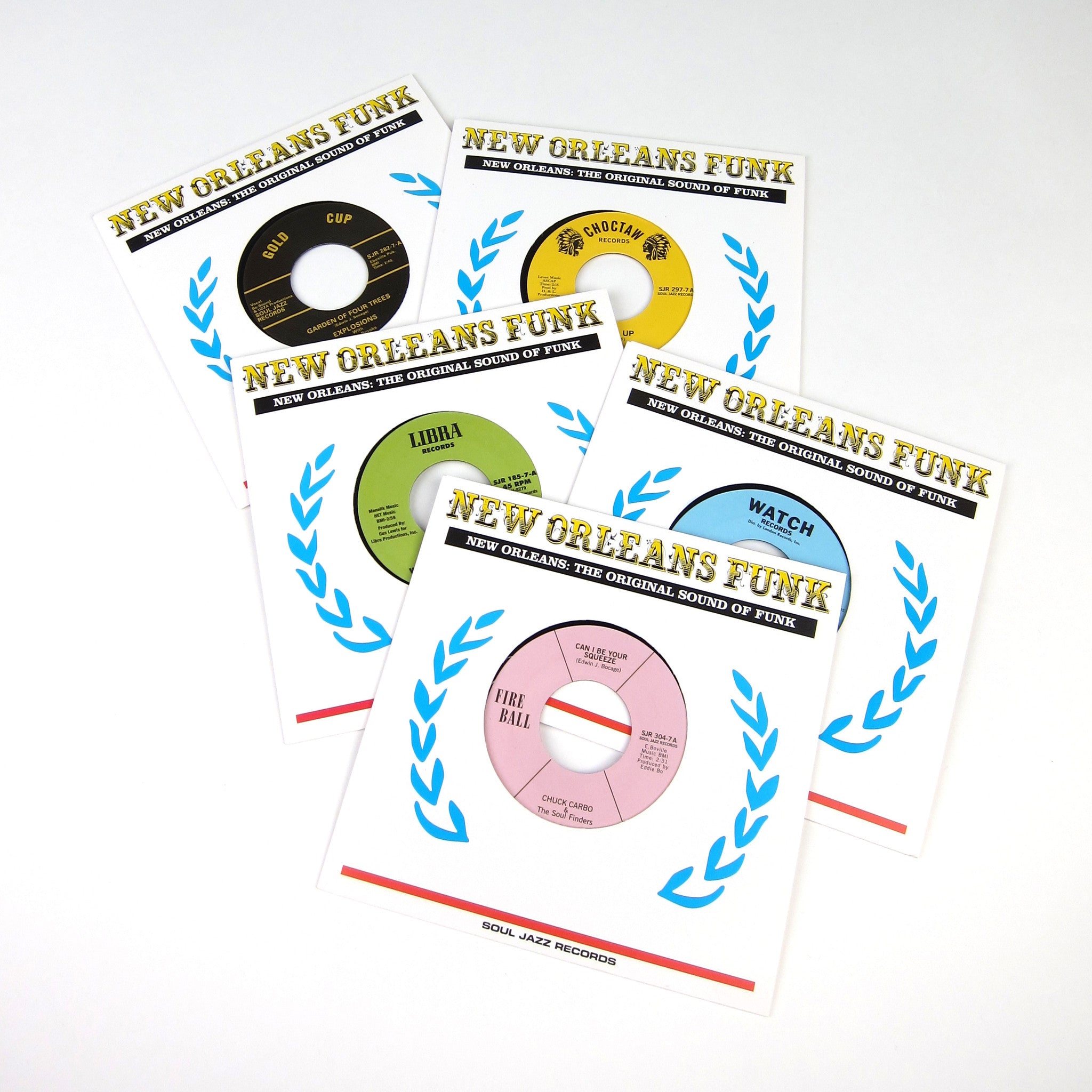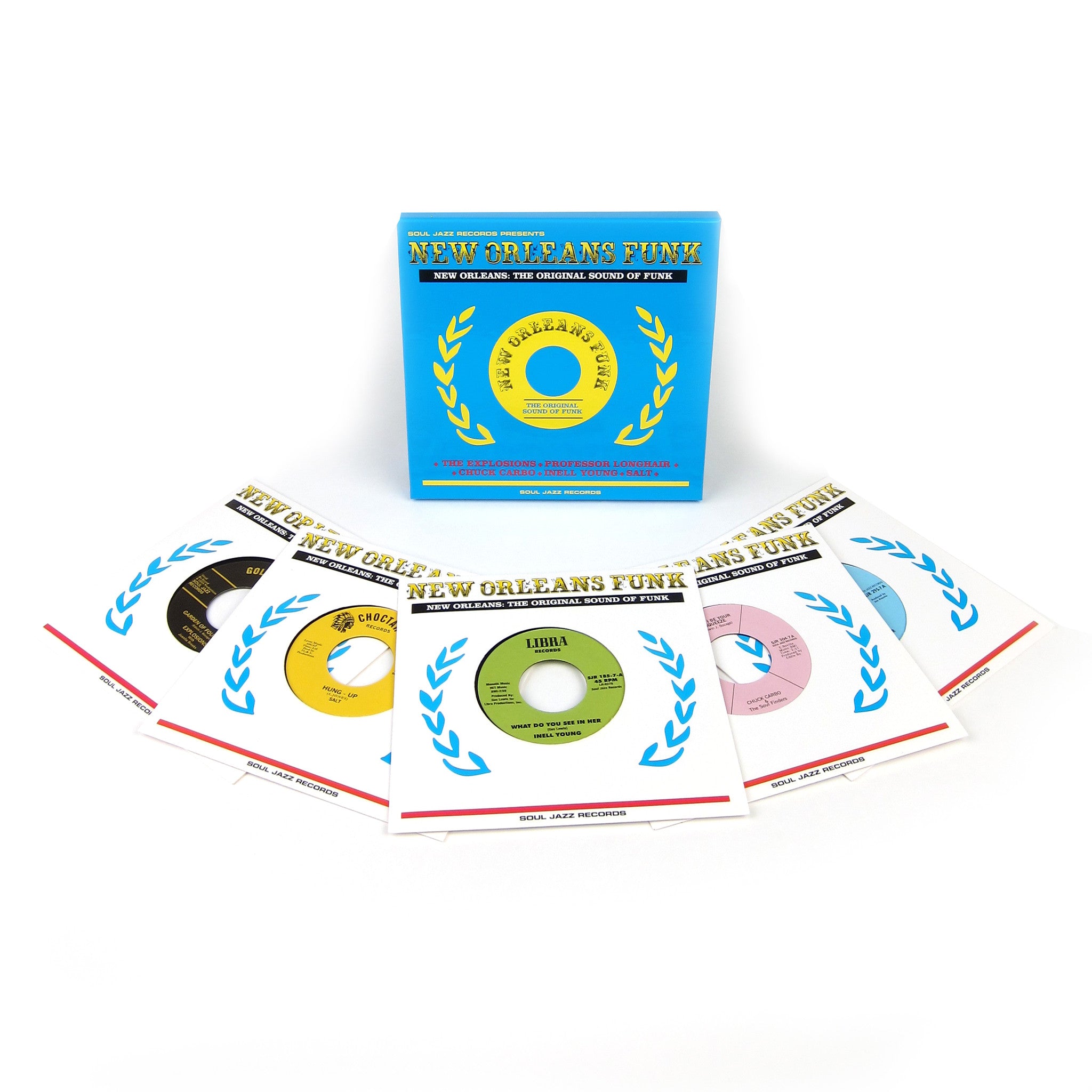 Record Store Day Exclusive! Soul Jazz revisits the South with this incredible box set of funk gems from New Orleans. Heads should be familiar with SJ's classic New Orleans Funk compilation, but this boxset takes it a step further by hooking up the funk on exact replica 45's! Five classic seven-inches are reproduced here, each with bespoke label artwork and digitally remastered sound for maximum bump in the trunk. Features tracks from The Explosions, Professor Longhair, Inell Young, Salt, and more. Comes packaged in a custom box with printed sleeves.
