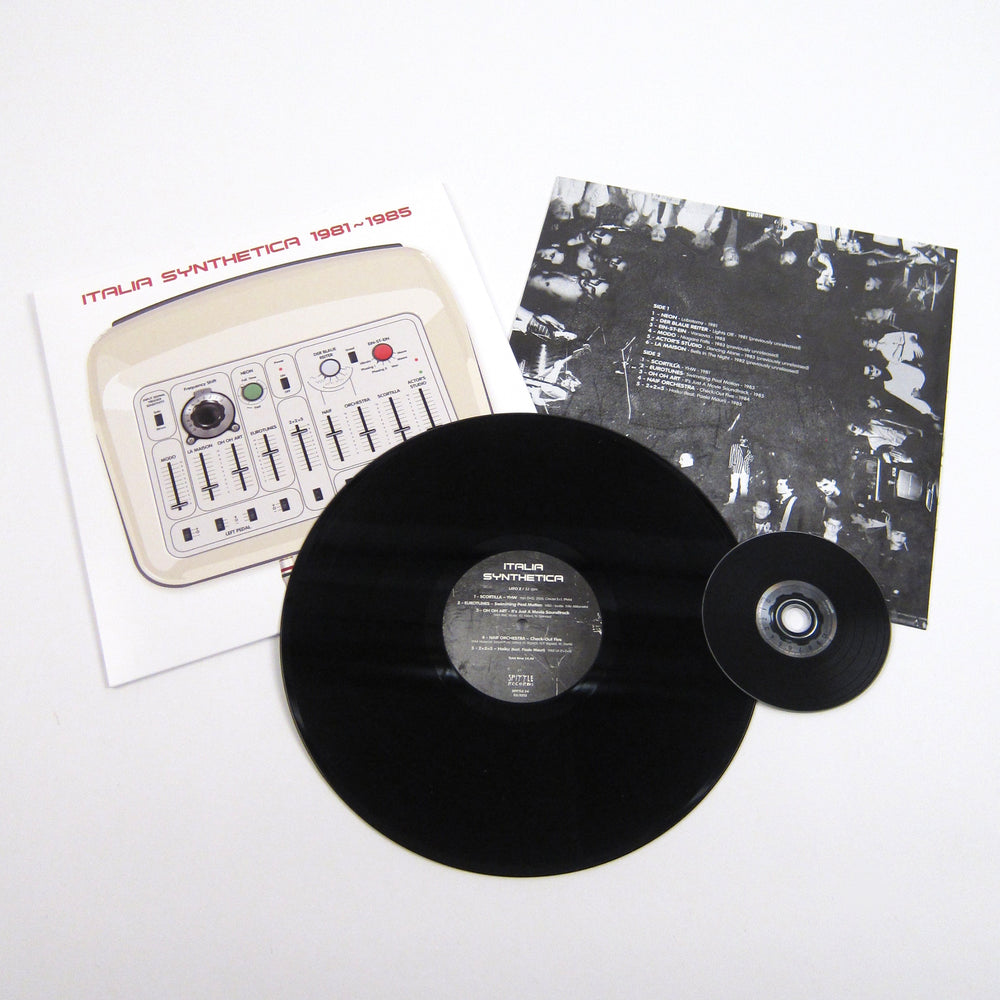 Another volume of rare Italian synthpop, new wave and post-punk compiled by the goodfellas at Spittle Records! Italia Synthetica is a perfect addendum to Italia New Wave, but while the latter focused on cold post-punk and no wave vibes, this volume collects slightly warmer, more imaginative sounds from the Italian underground. These tracks are still obviously rooted in post-punk, but you can hear the scene moving towards cosmic and intergalactic themes; and there’s some undeniable crossover with the Italo Disco nightclub sound here, evident on Naif Orchestra’s “Check-Out Five,” Eurotunes’ “Swimming Pool Motion,” Actor’s Studio’s “Dancing Alone” and Modo’s “Niagra Falls.” The comp teeters into full-blown cosmic electro territory on Scortilla’s “YHW.” If you’re into that raw, DIY sound, check out La Maison’s “Bells In The Night,” Neon’s “Lobotomy” and 2+2=5’s “Haiku.” 11 tracks altogether on standard black vinyl, with printed inner sleeve containing liner notes in English and Italian. Includes CD version with 5 additional tracks not included on the LP. Recommended.
